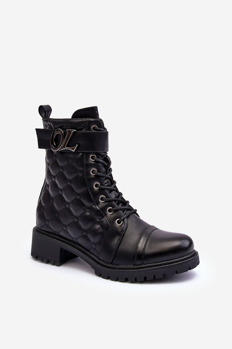 Uwielbianym i najczęściej wybieranym modelem przez kobiety są botki na płaskim, stabilnym obcasie. Posiadają wiele atutów, jednak głównym z nich jest zapewnienie wysokiego komfortu podczas noszenia. Botki zostały wykonane z eko skóry. Zapinane na suwak po wewnętrznej stronie oraz dodatkowo sznurowane. Cholewka zdobiona licznym przeszyciami. Na pasku ozdoba z tworzywa sztucznego. Model ten posiada usztywniony zapiętek.