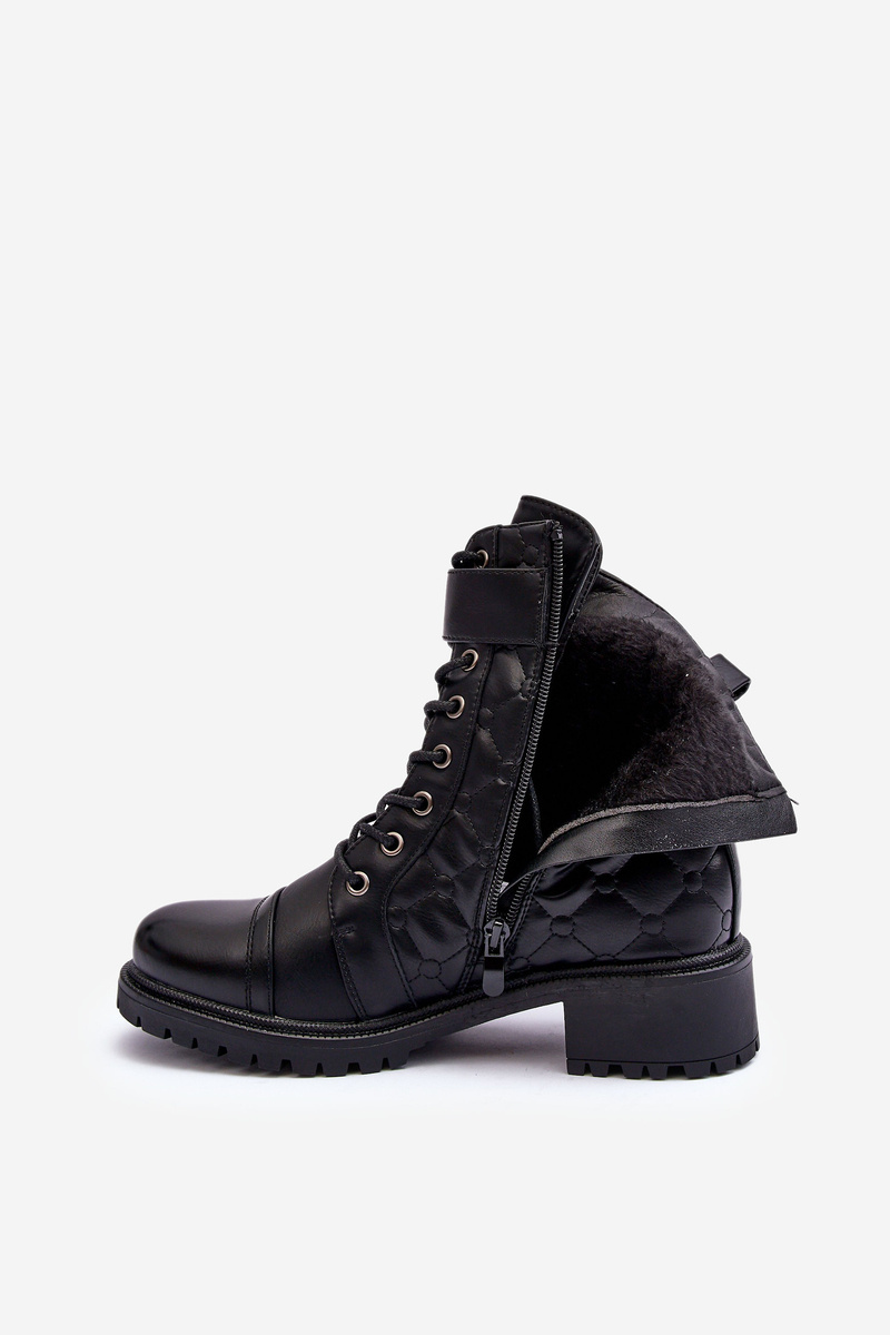 Botki Workery Skóra Ozdoba Czarne Davo 4884