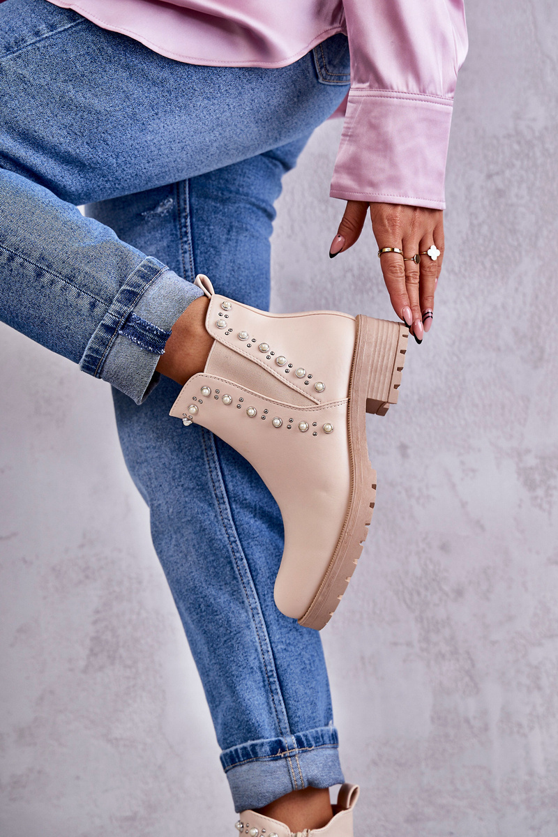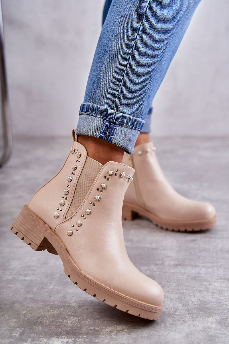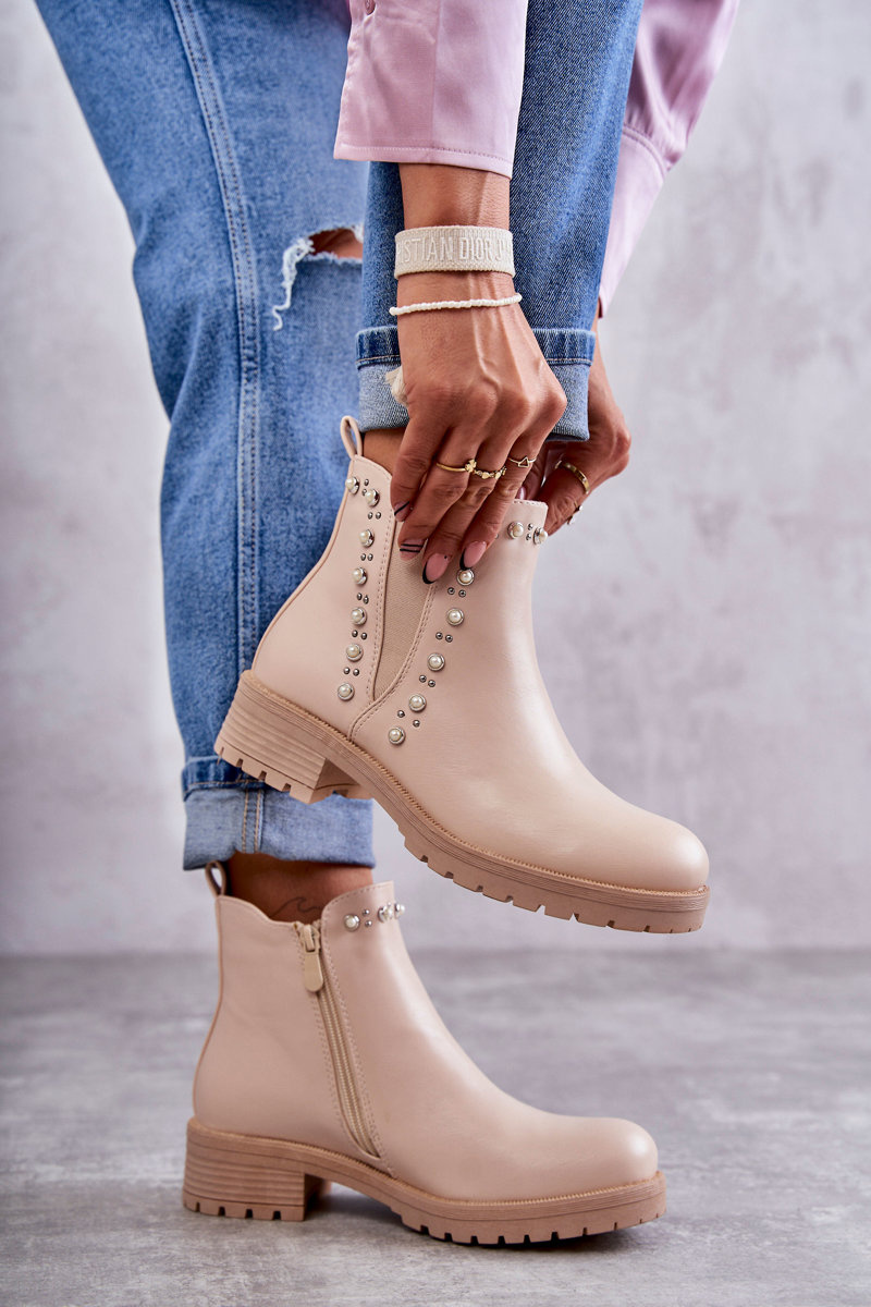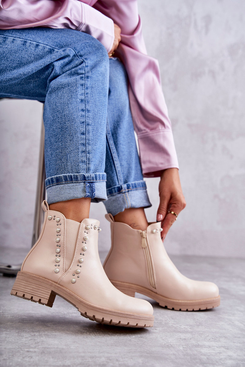 Opinie o Botki Workery Suwak Skóra Beżowe Ferra