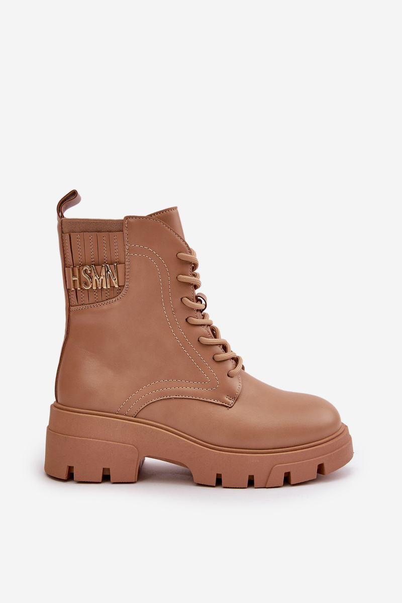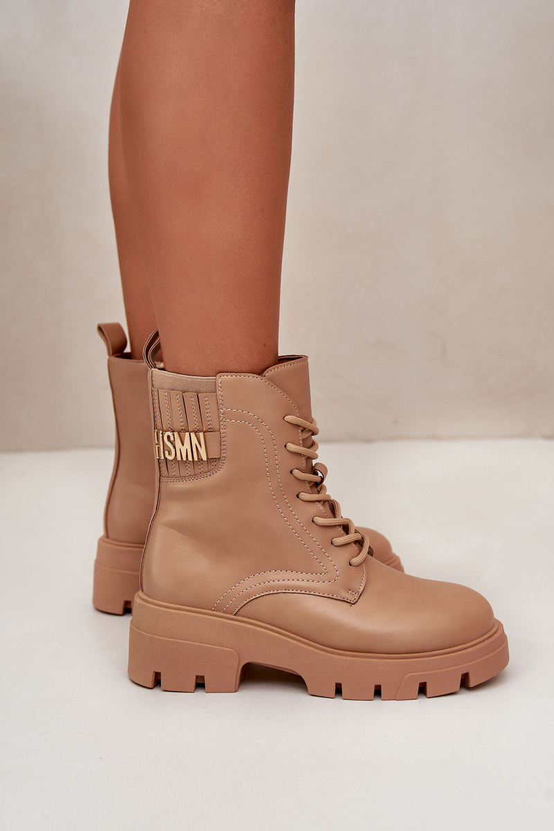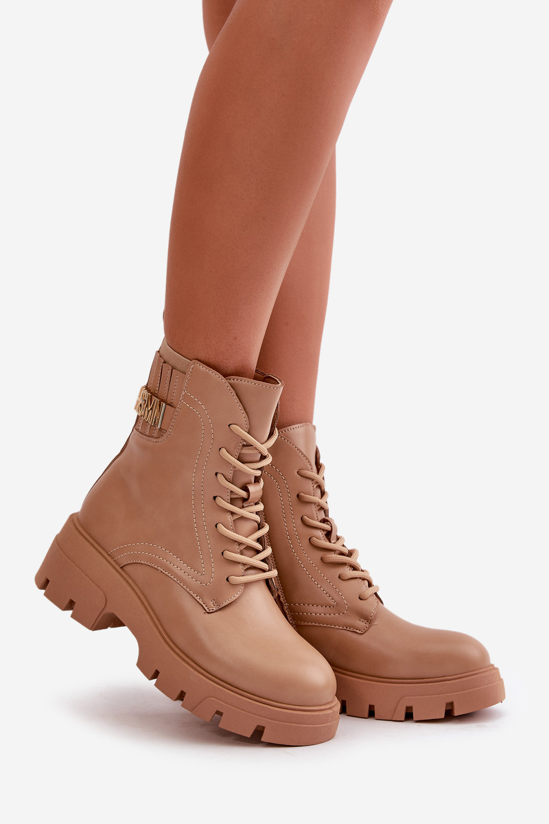 Botki Workery Sznurowane Na Zamek Eko Skórzane Damskie Beżowe Naolani