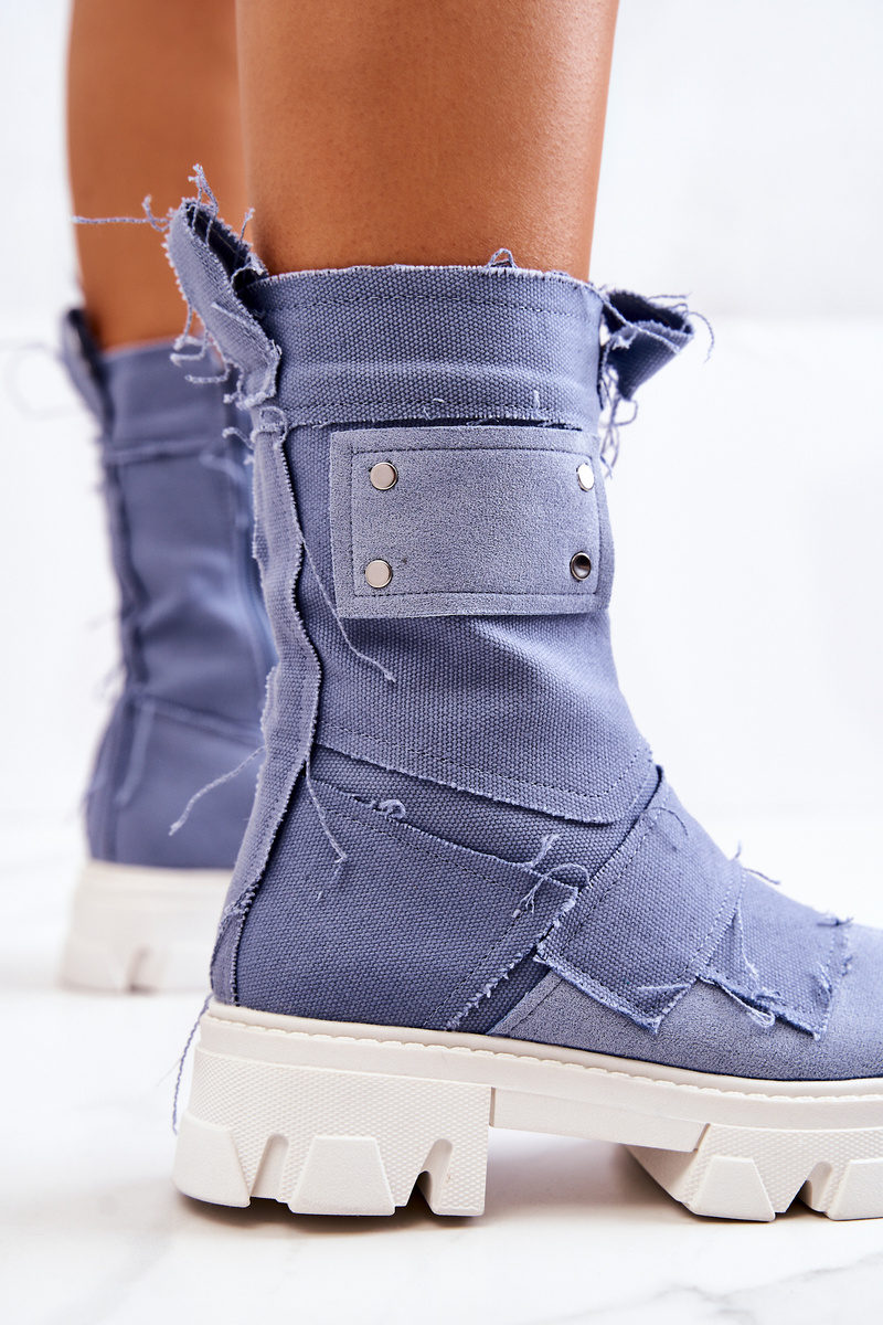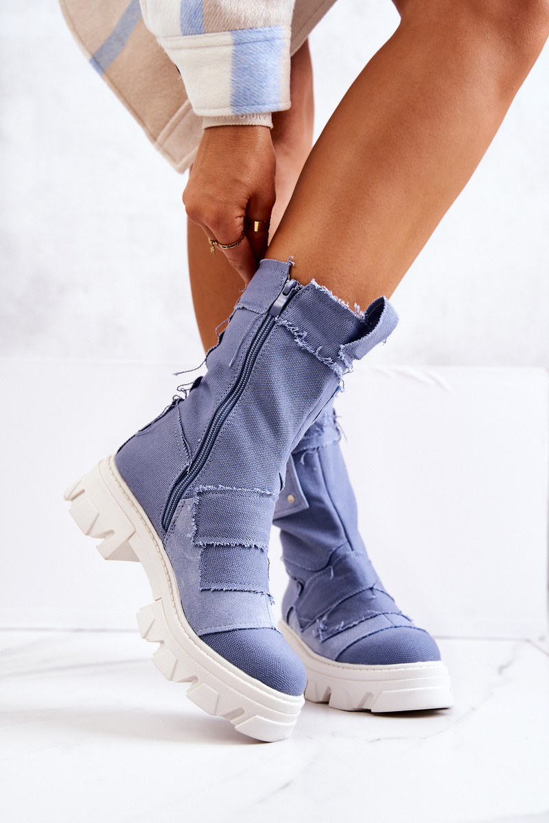 Botki Workery Wysoka Cholewka Na Suwak Niebieskie Nerisa