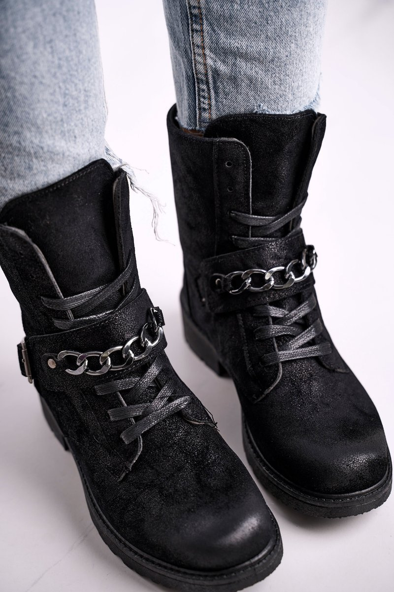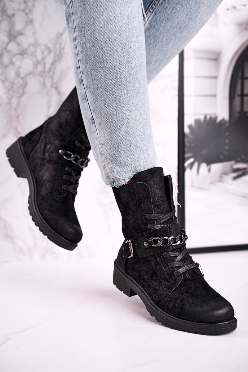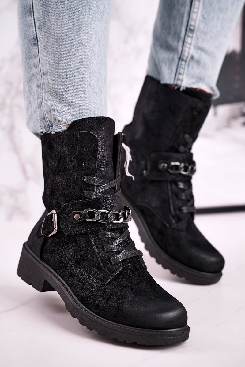 Botki Workery Z Łańcuchem Zamszowe Czarne Augusta