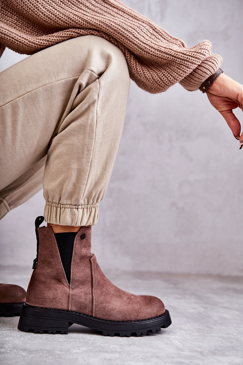 Opinie o Botki Workery Zamsz Ocieplane Płaski Obcas Jasnobrązowe Salome