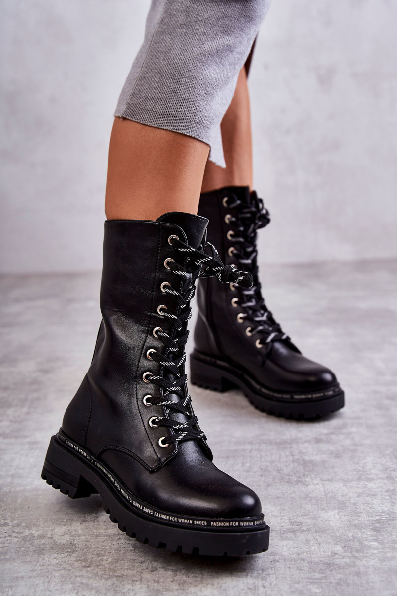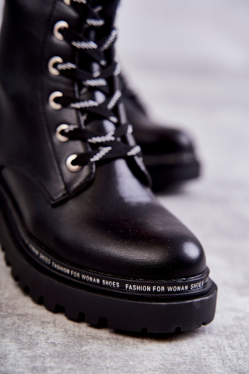 Botki Wysokie Ocieplane Damskie Wiązane Czarne Darla