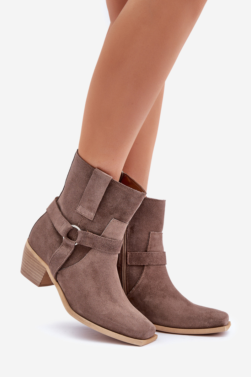 Jeśli tu trafiłaś, to znaczy, że cenisz sobie wyjątkowy styl! Botki na obcasie to buty, które można nosić niemalże do każdej stylizacji i jednocześnie zachwycać wyglądem. Wykonane z naturalnego zamszu. Osadzone na niskim obcasie. Noski zaokrąglone z kwadratową podeszwą. Cholewka ozdobiona paskami z kółkiem. Model ten idealnie sprawdzi się zarówno w casualowych, jak i bardziej formalnych stylizacjach, łącząc wygodę z modnym designem.