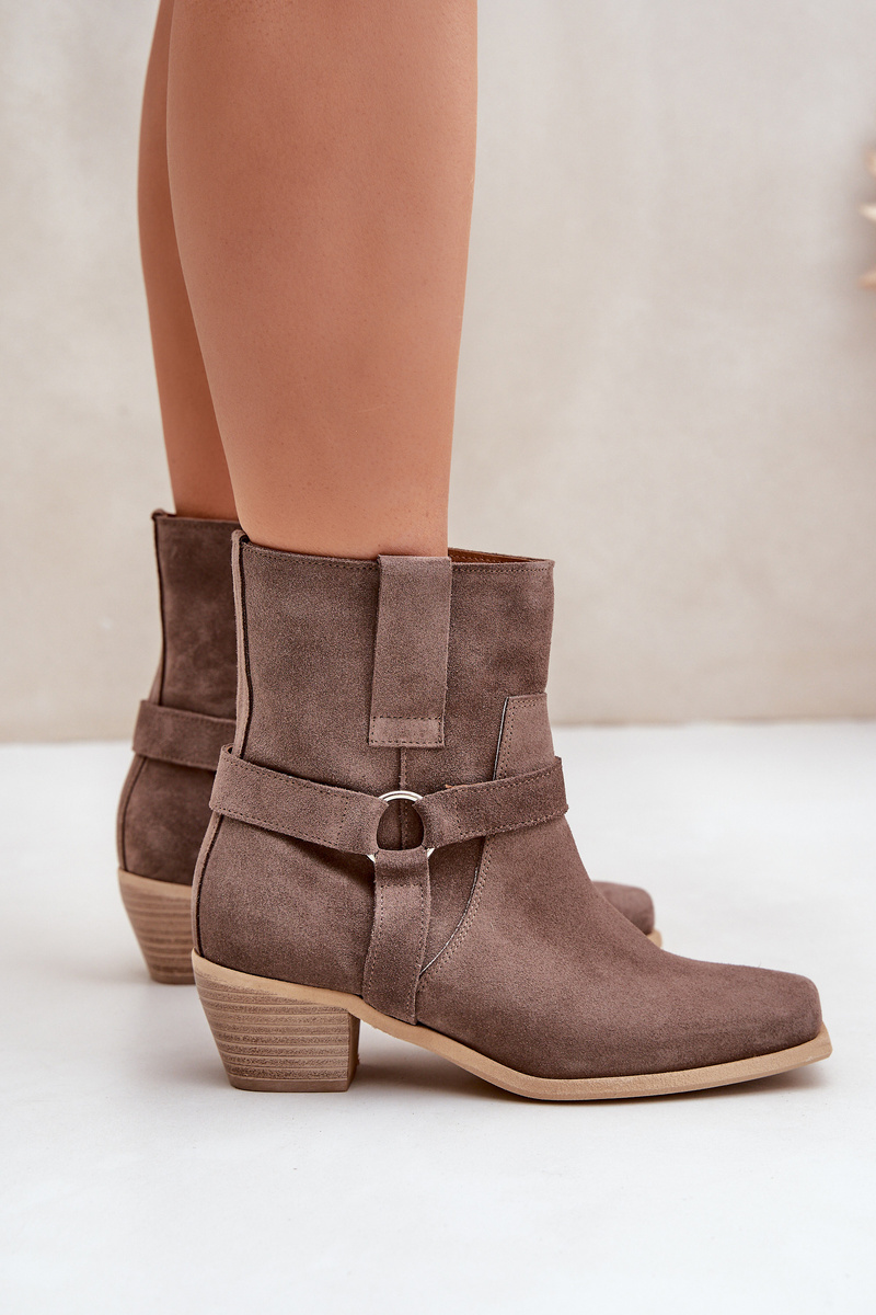 Botki Z Naturalnego Zamszu Obcas Słupek Brązowe Zazoo 3444/2