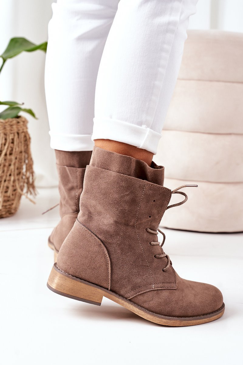 Botki Z Podwójną Cholewką Jasny Brąz Violetta