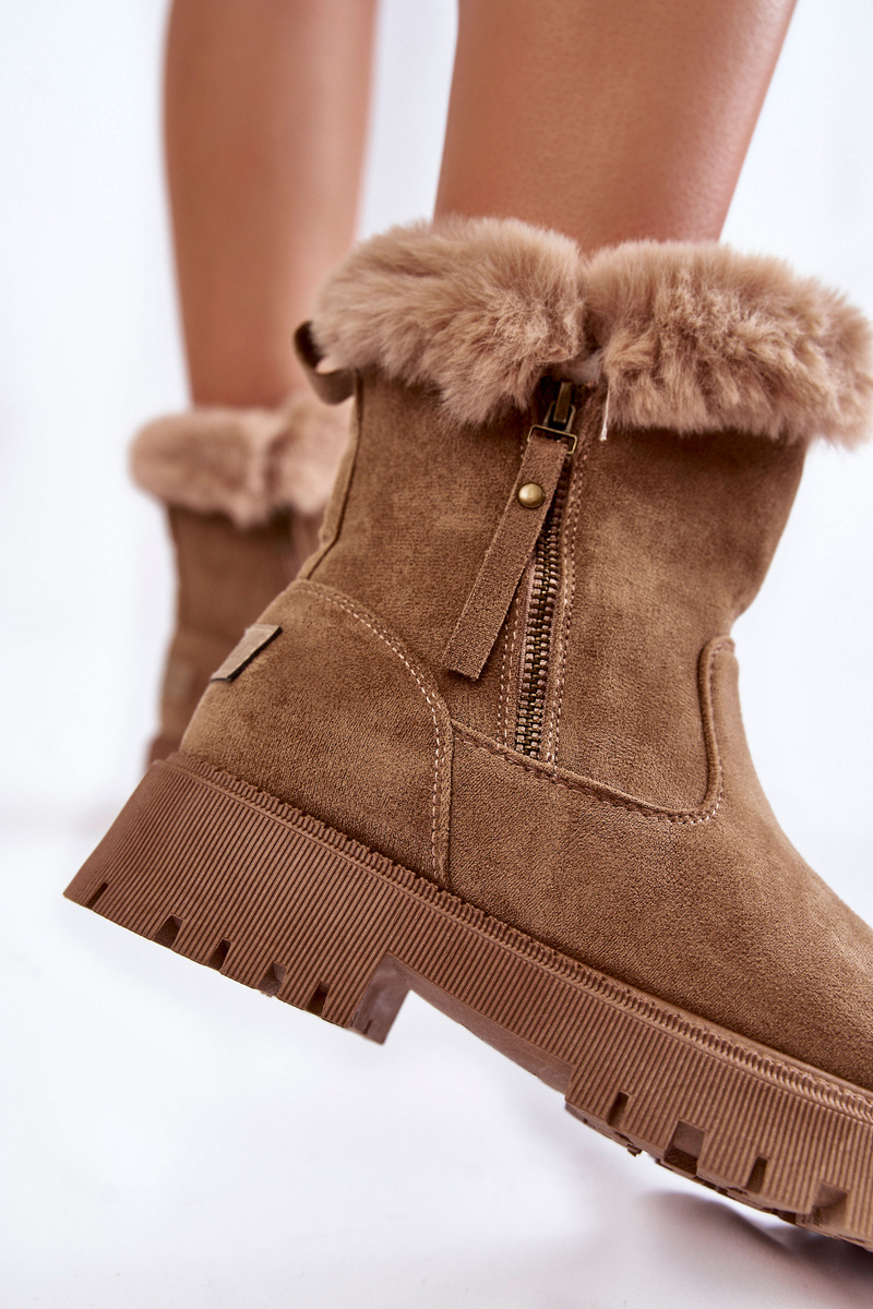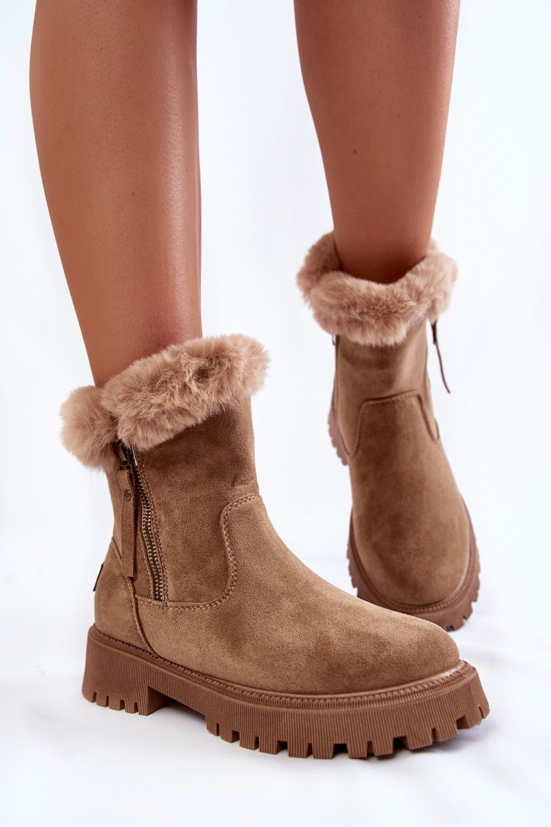 Botki Zamsz Futerko Suwak Beżowe Rezan