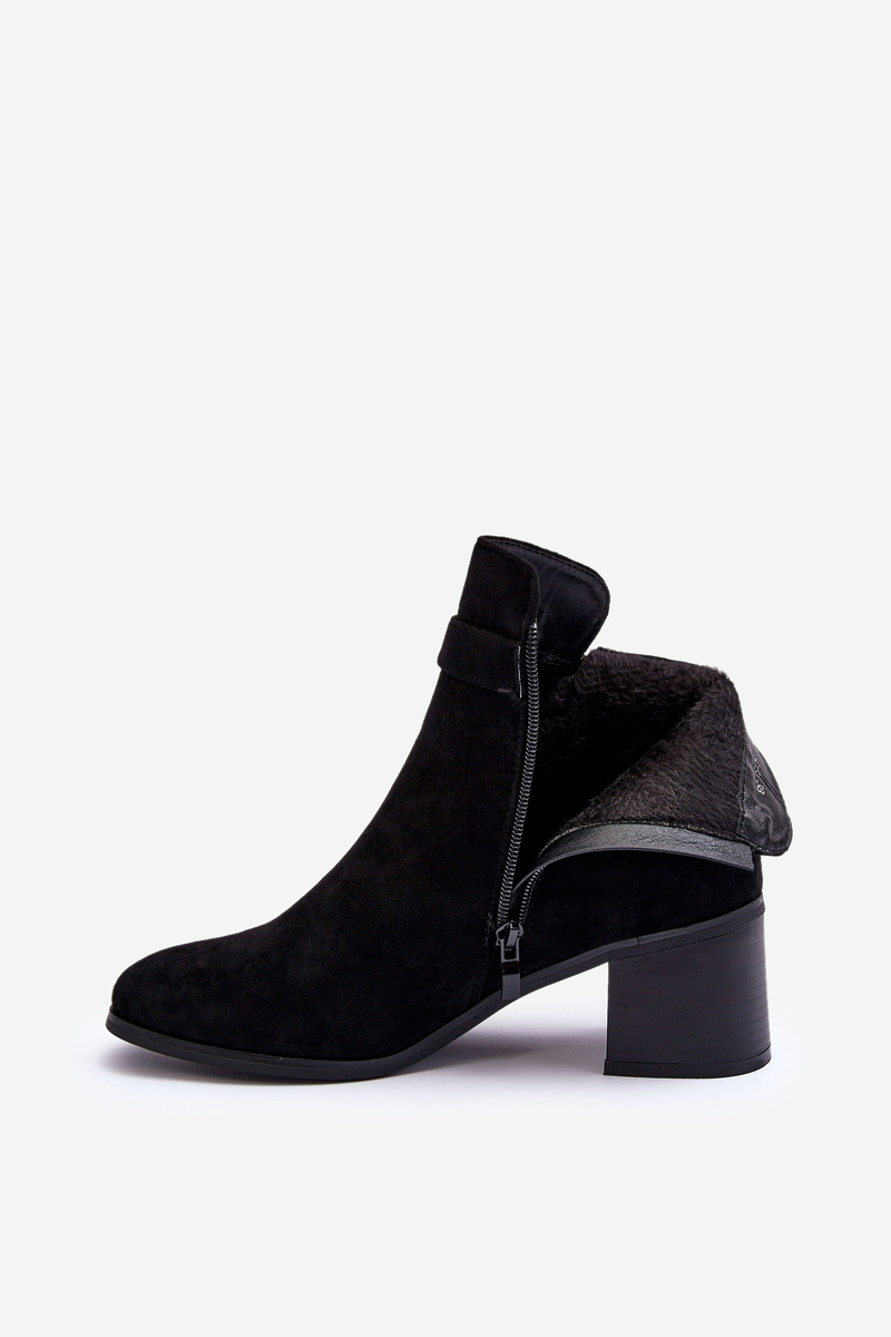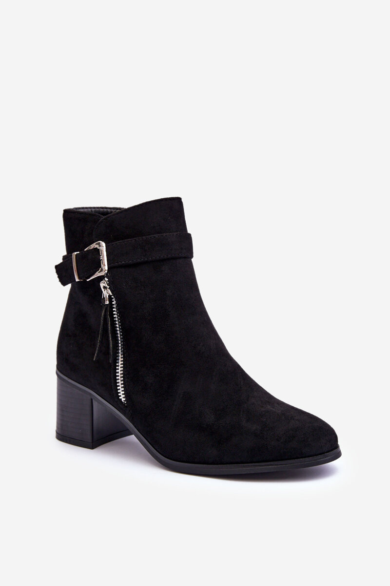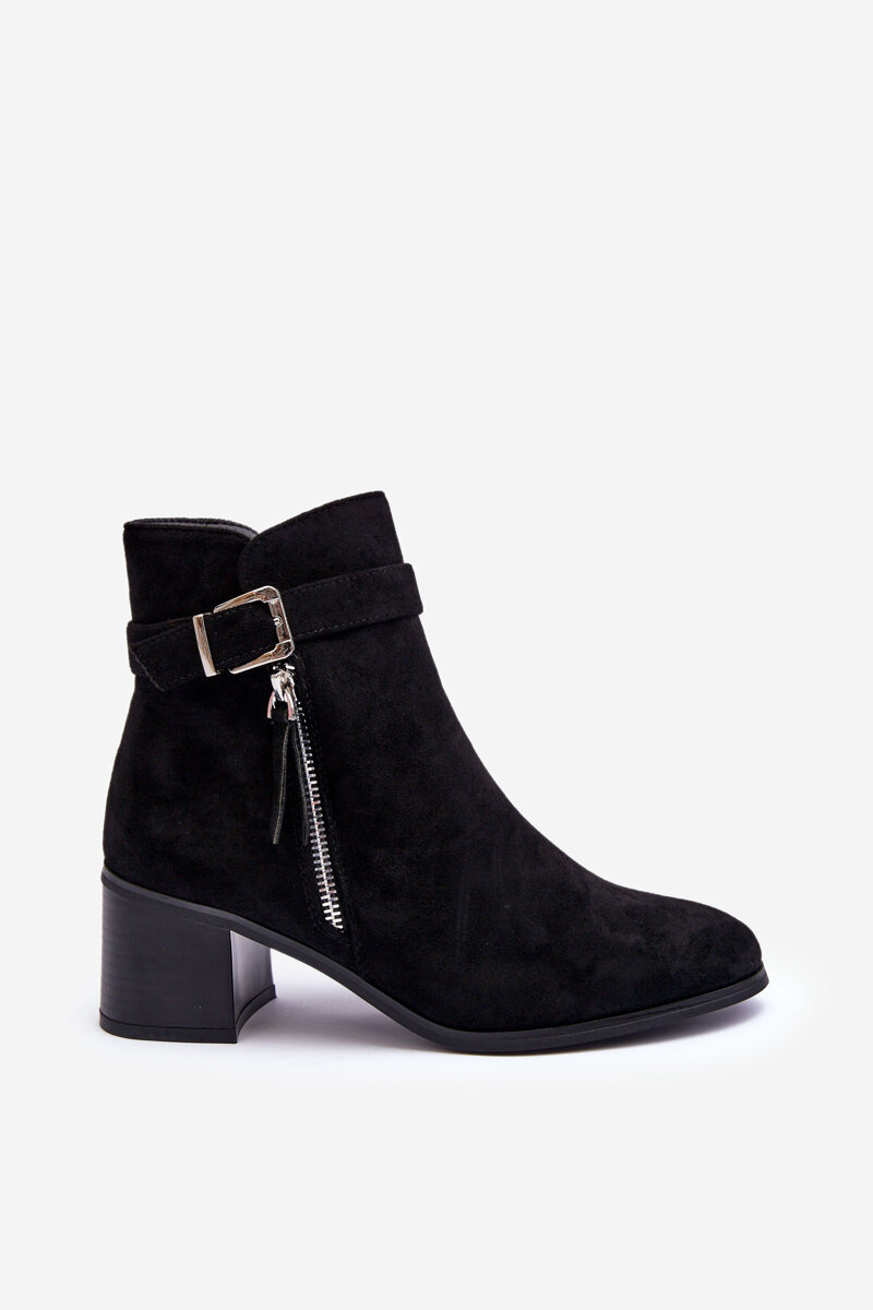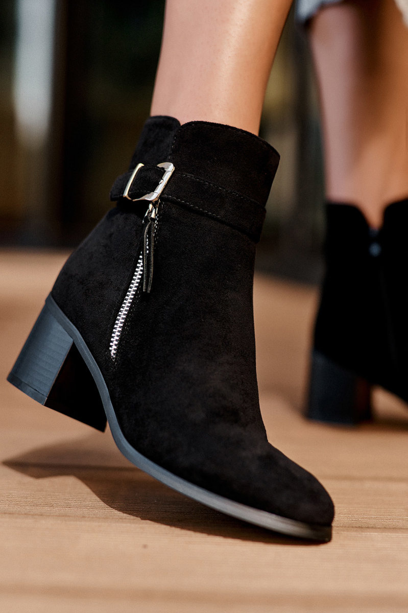 Botki Zamsz Obcas Klamra Czarne Bronte 5733