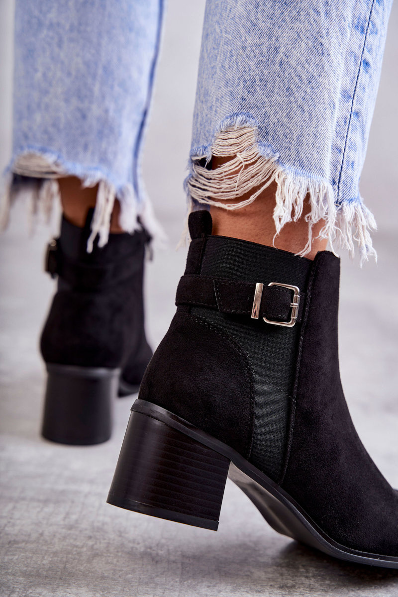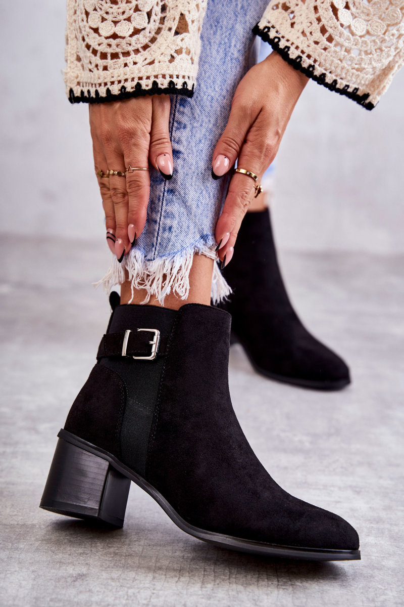 Botki Zamsz Obcas Słupek Czarne Vannes