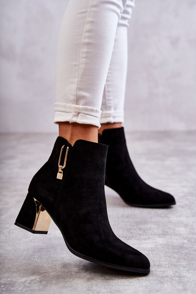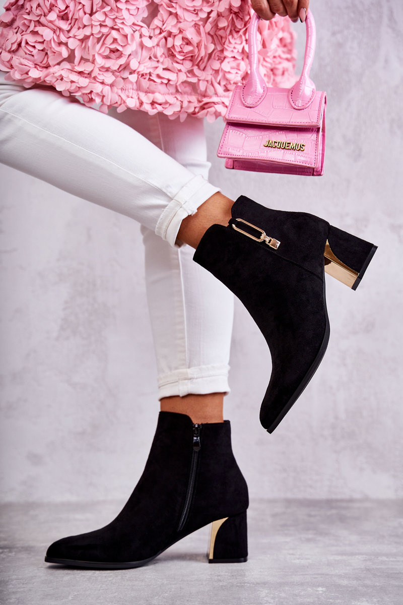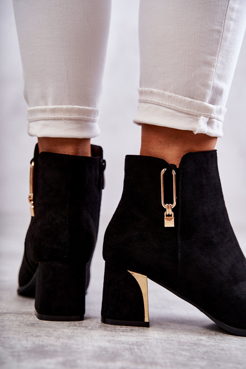 Botki Zamsz Obcas Słupku Ozdoba Czarne Erine