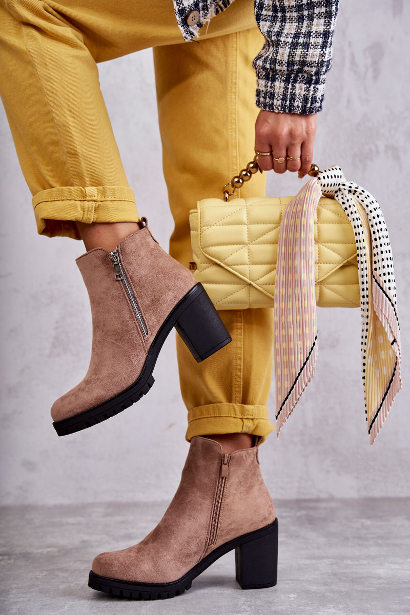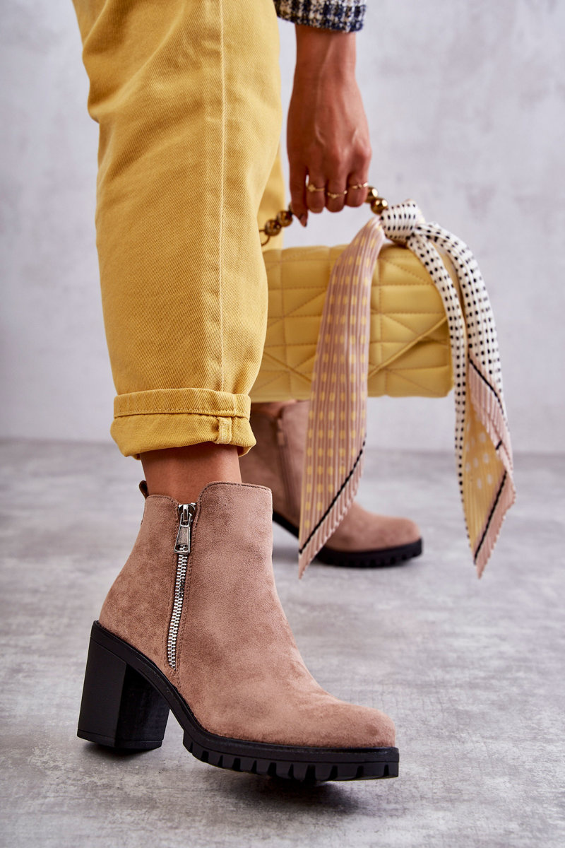 Opinie o Botki Zamsz Obcas Suwaki Beżowe Sevione