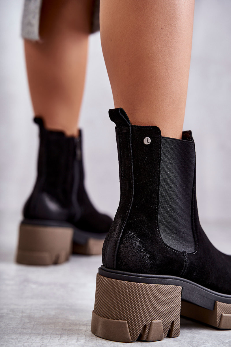 Botki Zamsz Platforma Czarne Lemar Hilde