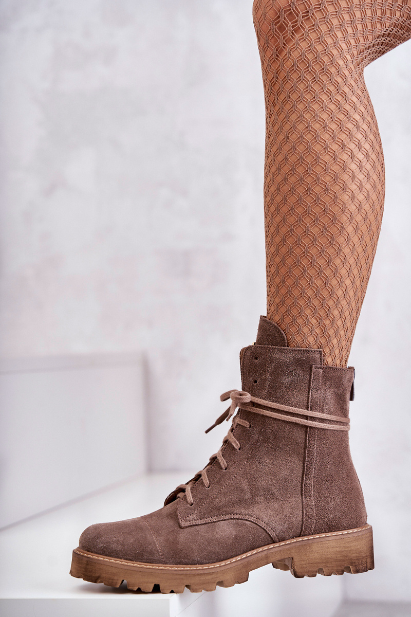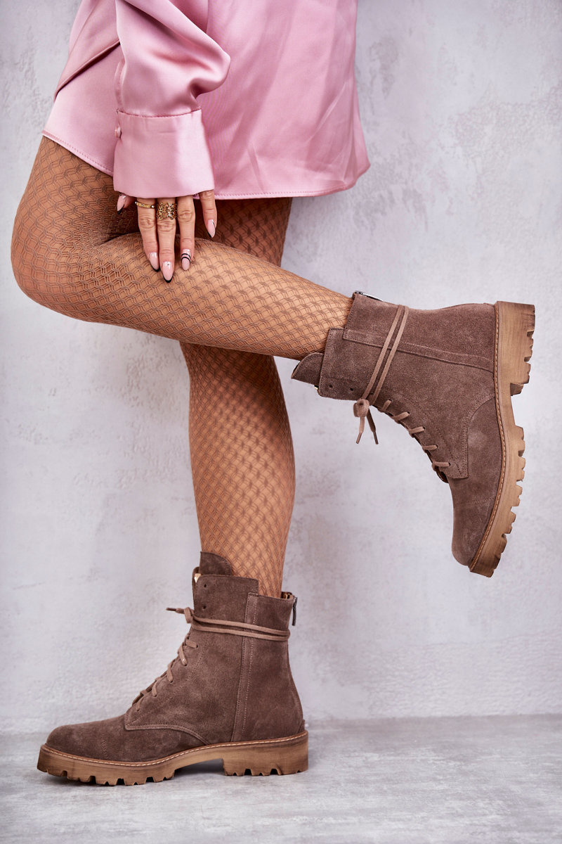 Botki Zamsz Suwak Brązowe Nicole 2754