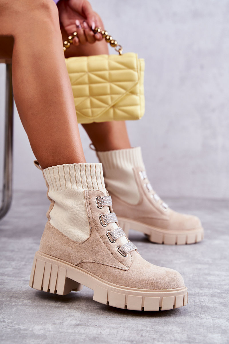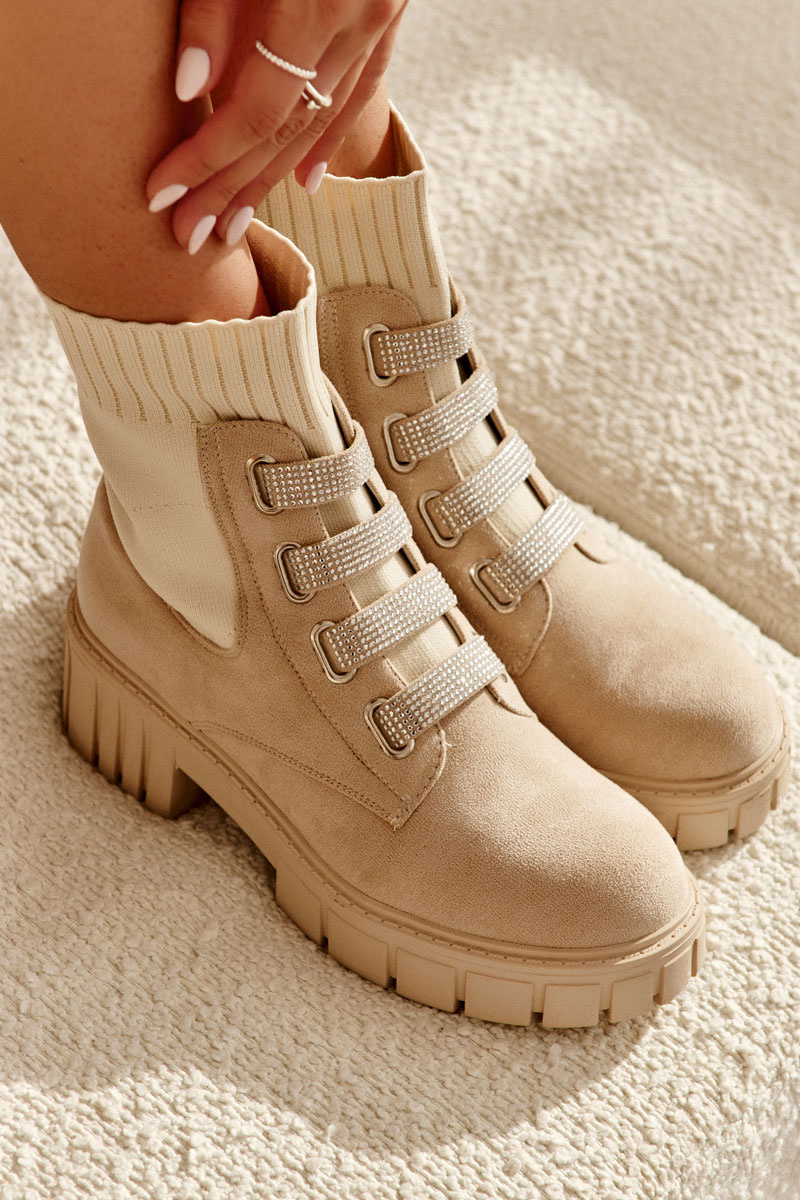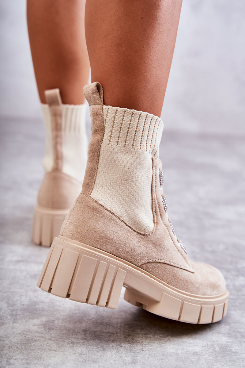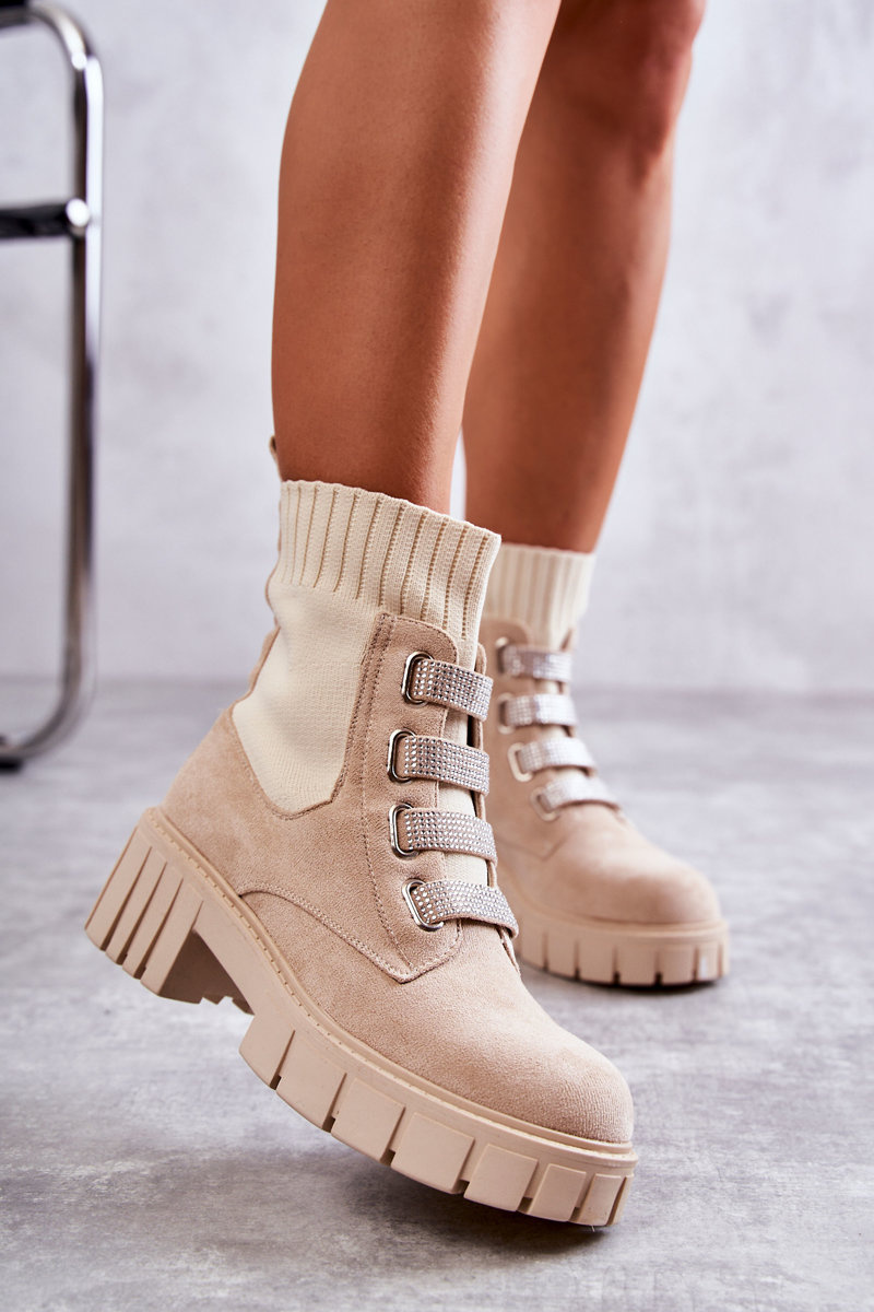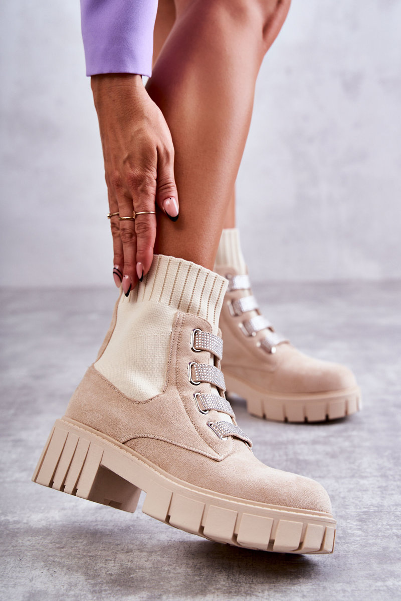 Opinie o Botki Zamsz Wsuwane Skarpetkowe Beżowe Hope