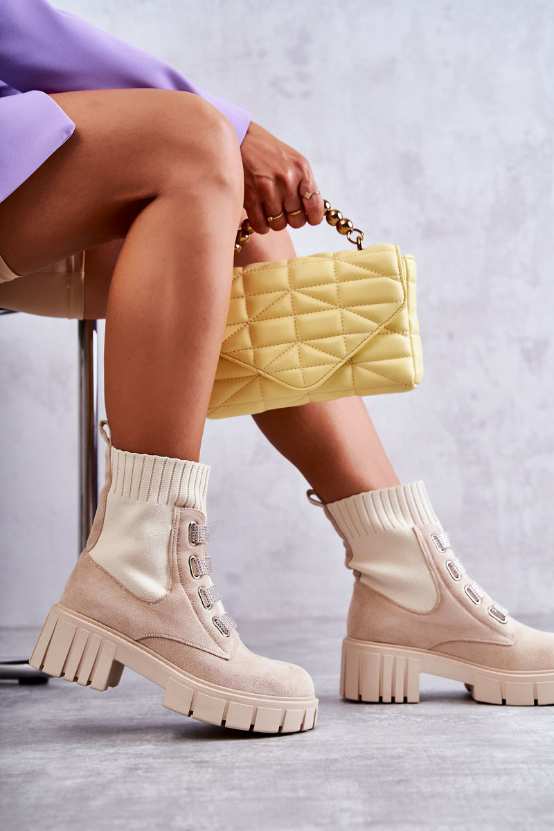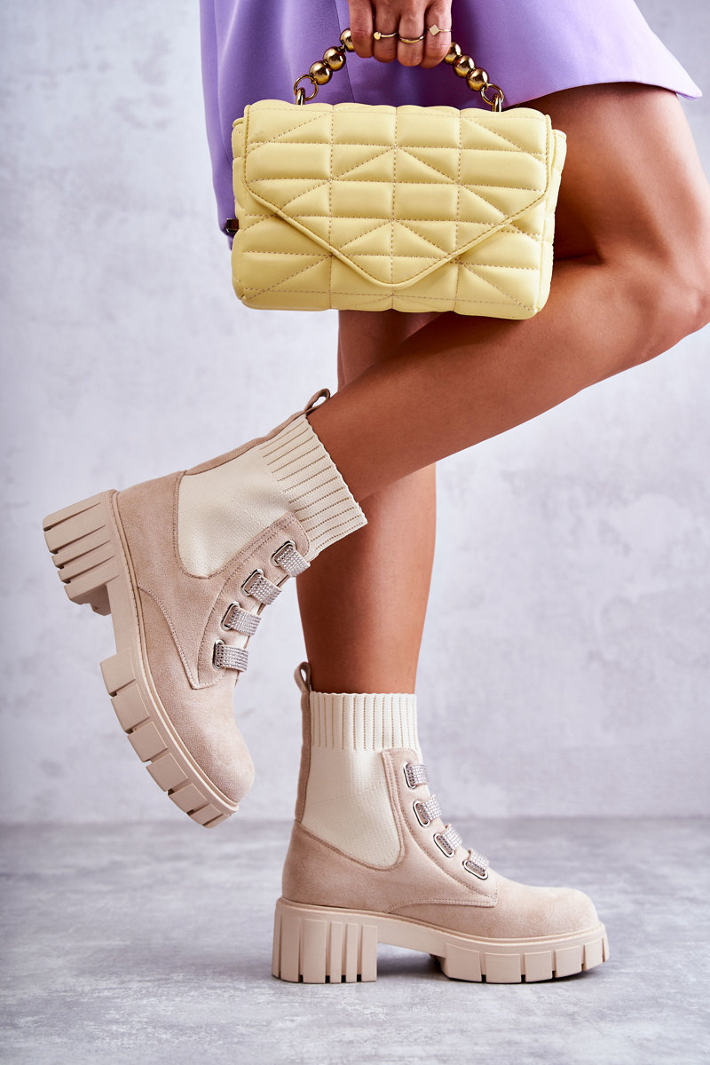 Botki Zamsz Wsuwane Skarpetkowe Beżowe Hope