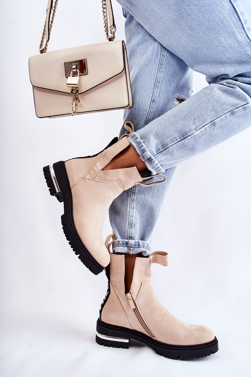 Opinie o Botki Zamsz Wycięcia Beżowe Elvera