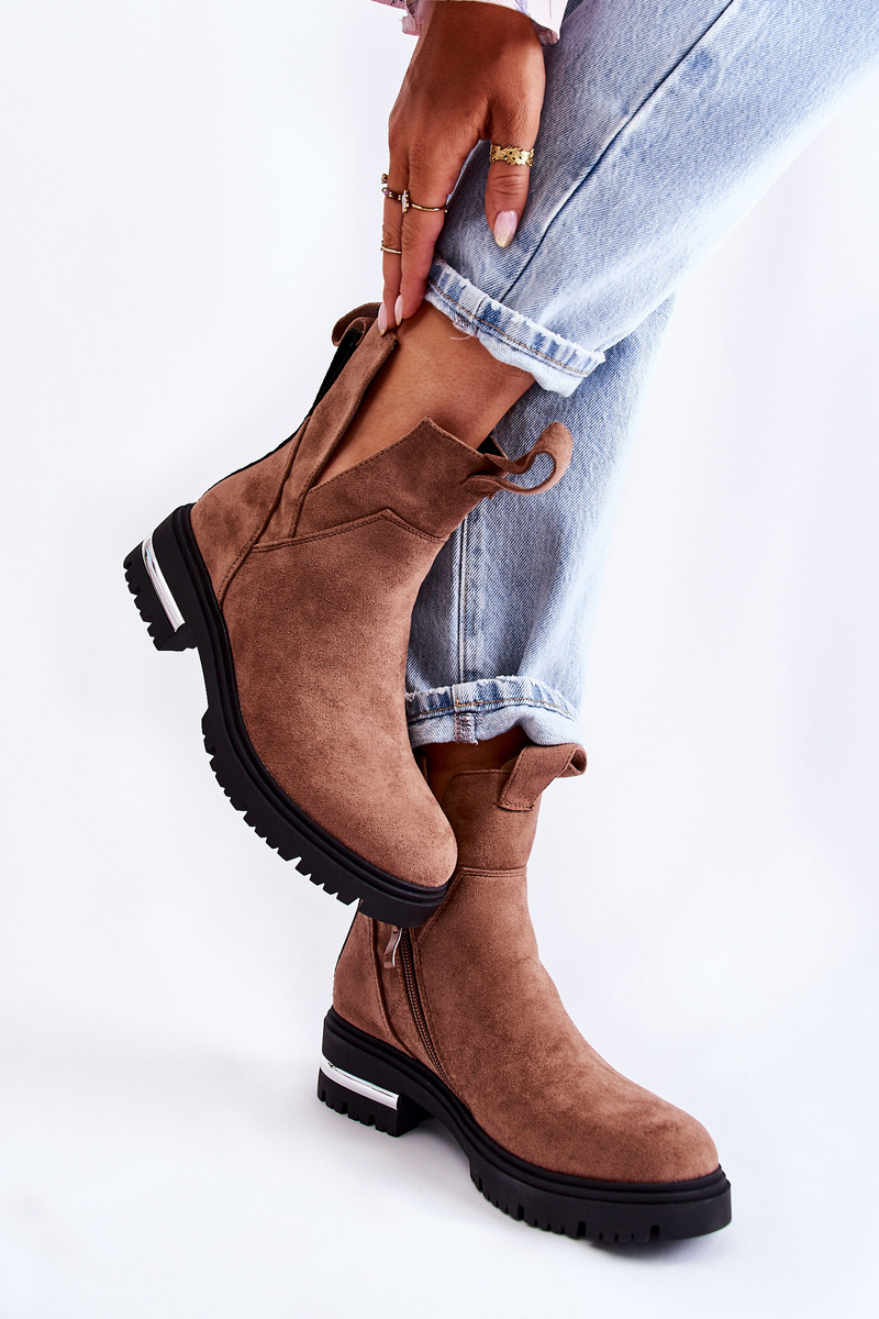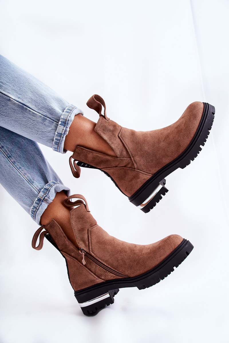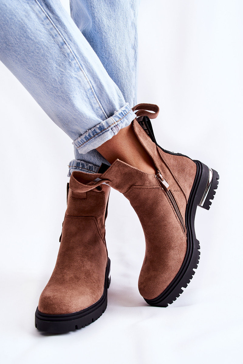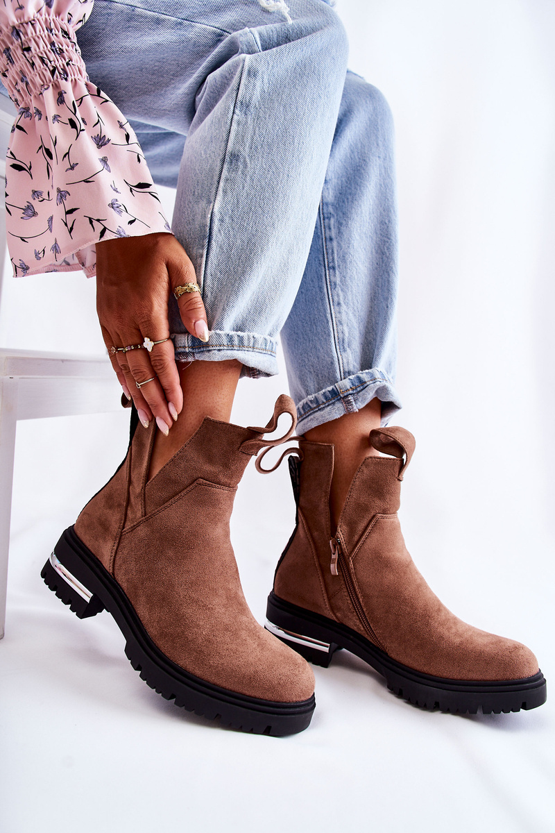 Opinie o Botki Zamsz Wycięcia Brązowe Elvera