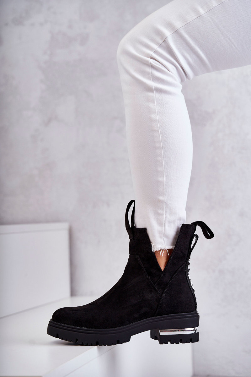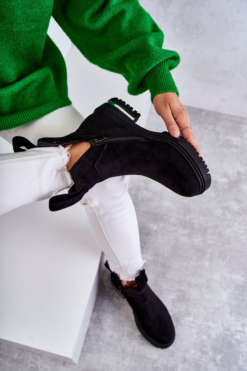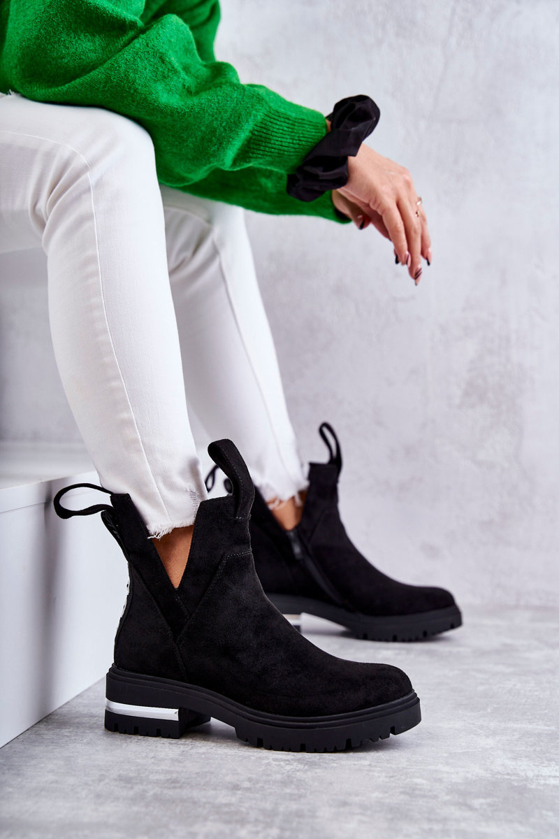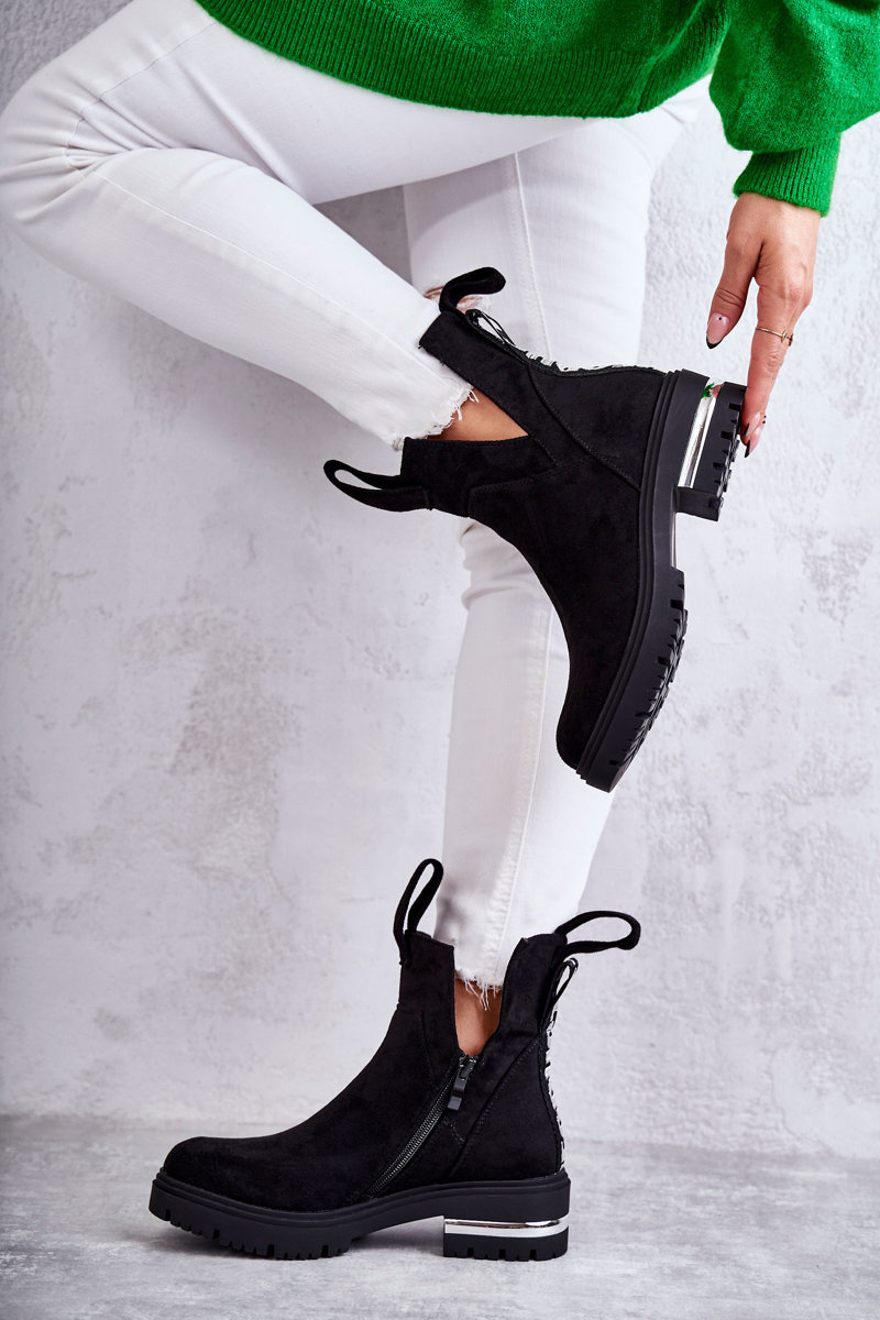 Botki Zamsz Wycięcia Czarne Elvera