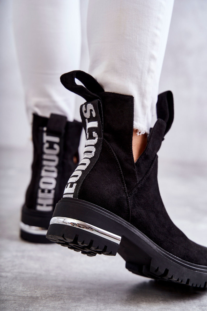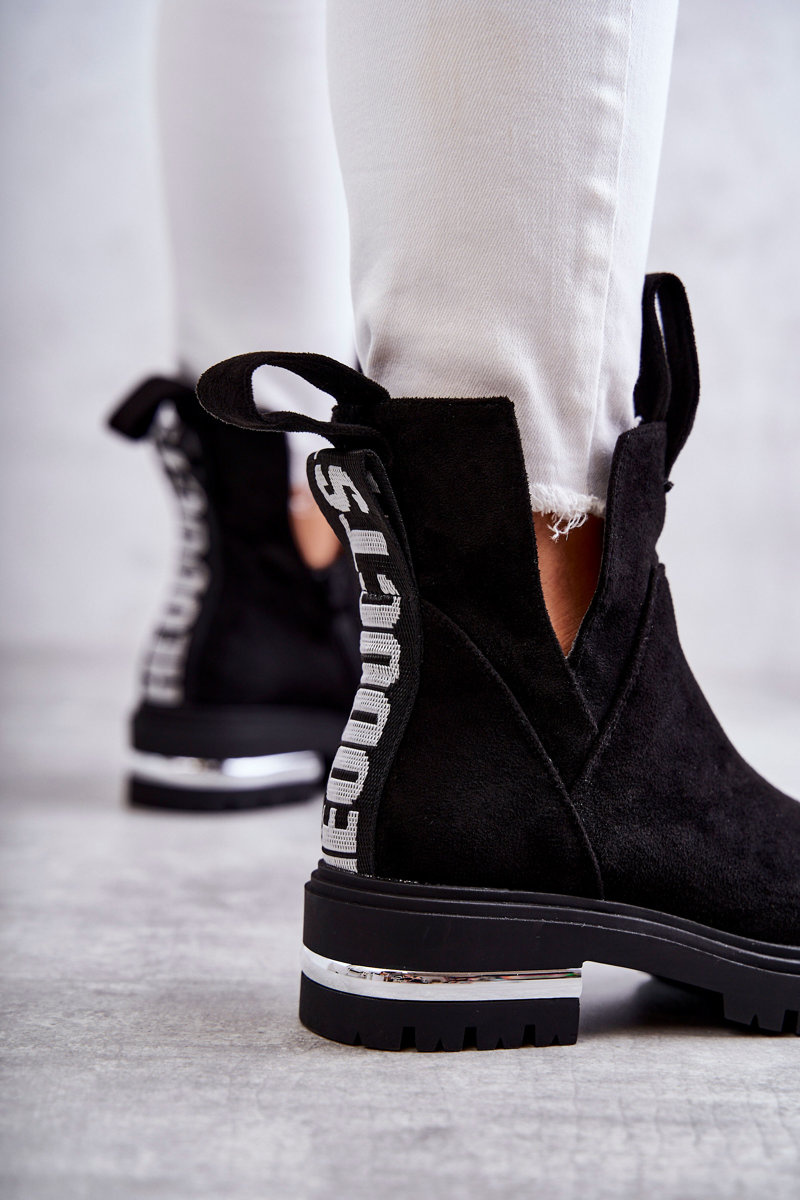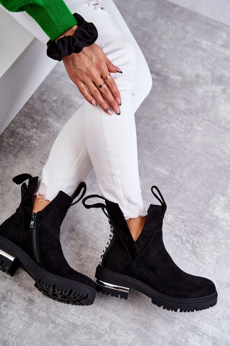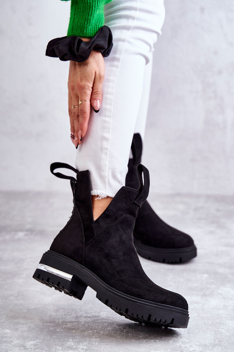 Botki Zamsz Wycięcia Czarne Elvera