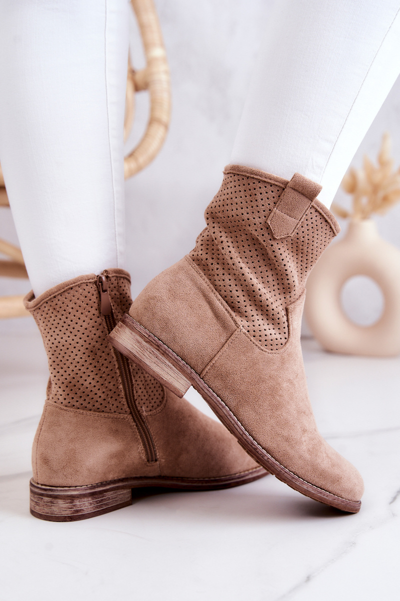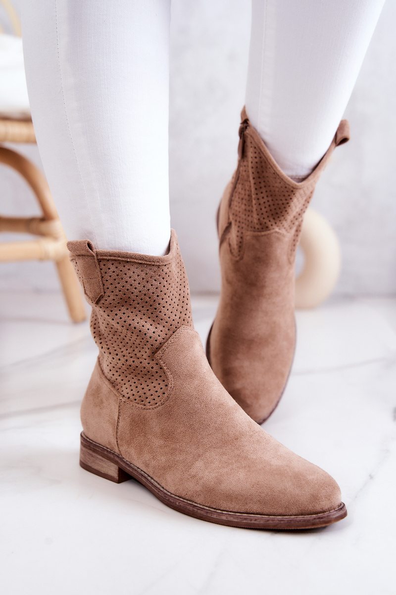Botki Zamszowe Damskie Ażurowe Beżowe Lemar