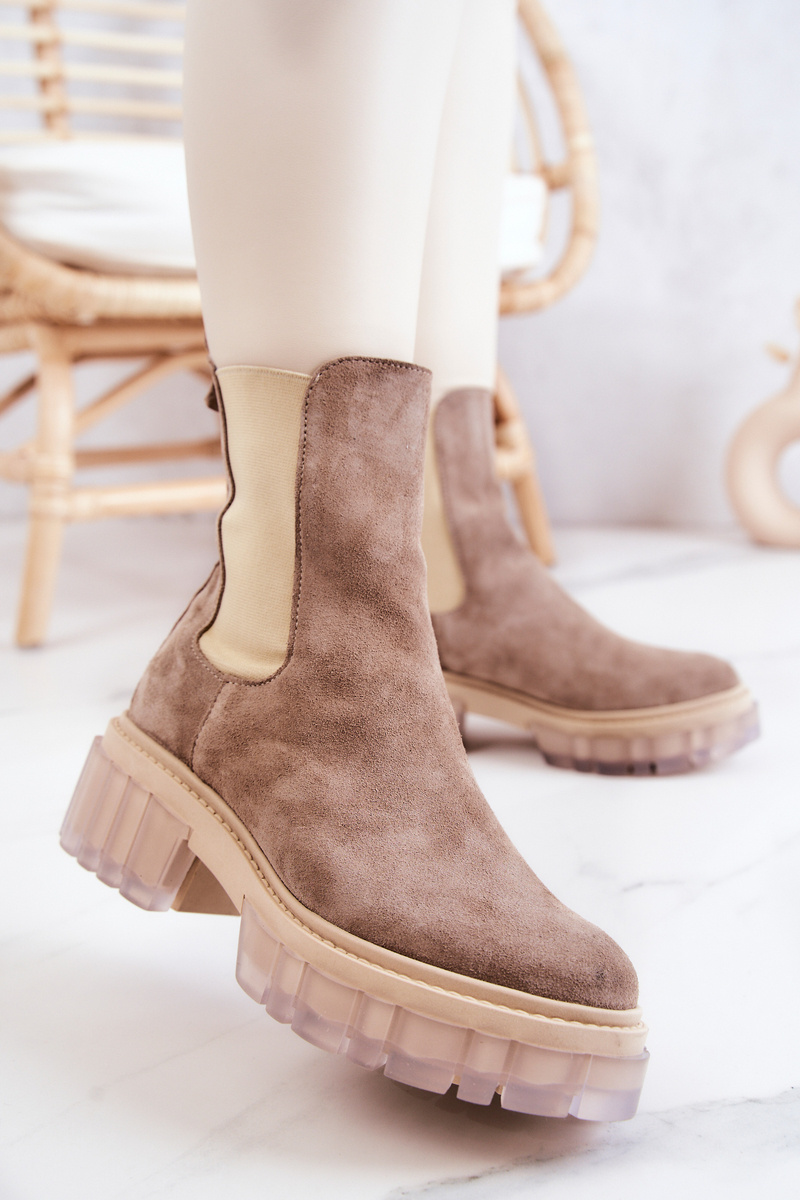 Botki Zamszowe Damskie Beżowe Eliann