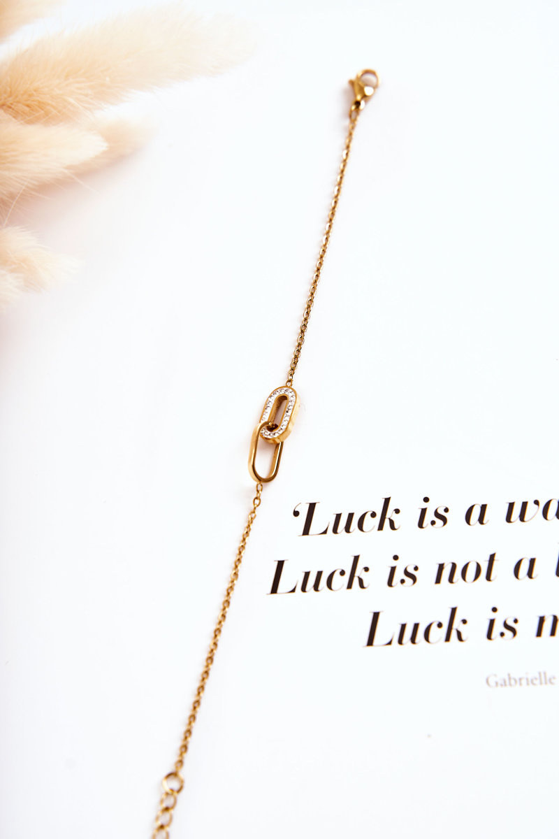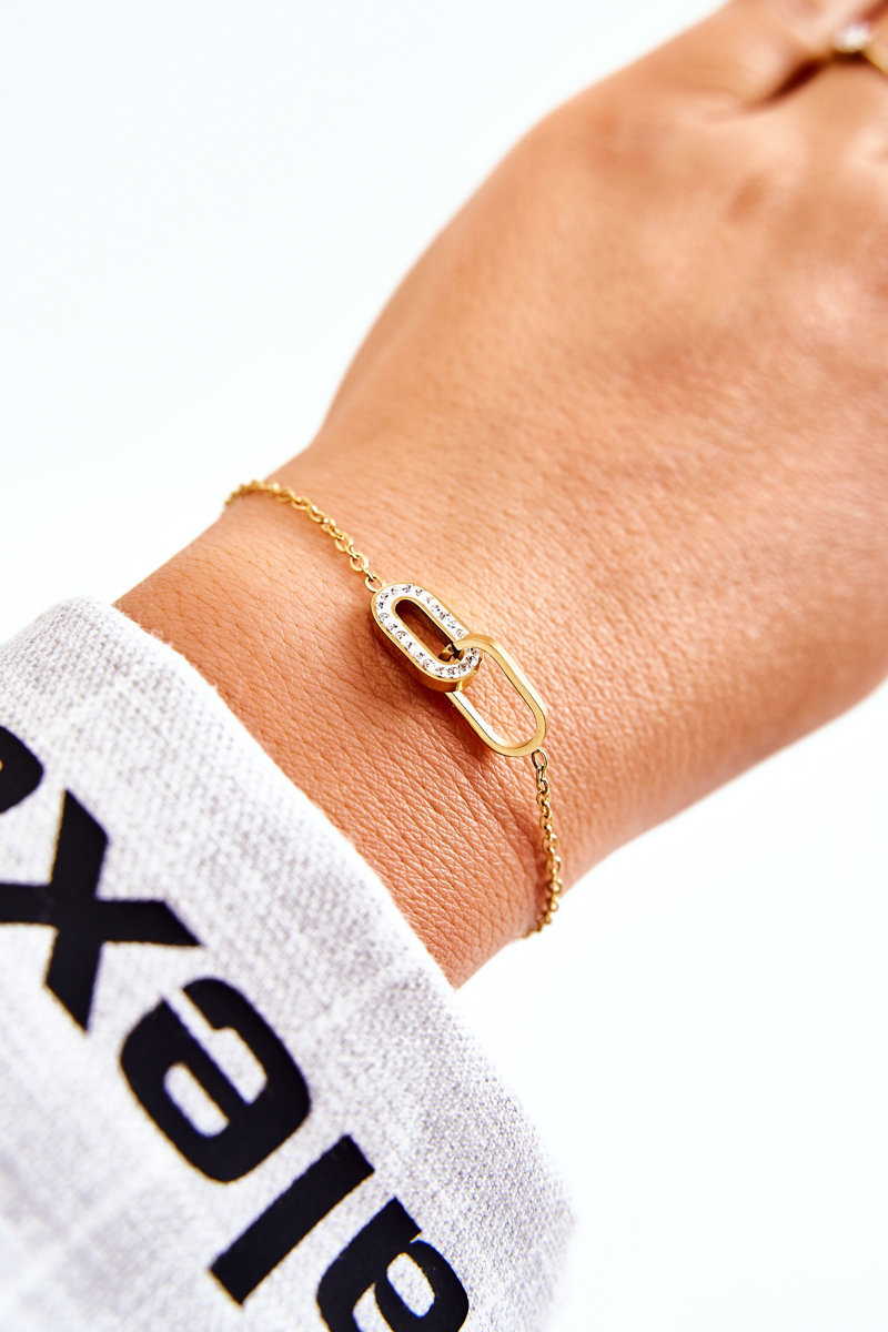 Biżuteria jest świetnym uzupełnieniem nie tylko tych elegancki, ale i codziennych stylizacji. Delikatne łańcuszki, bransoletki, broszki - idealnie podkreślą Twój styl. Koniecznie sprawdź naszą ofertę akcesoriów. Bransoletka na cienkim łańcuszku typu celebrytka wykonana ze stali nierdzewnej. Na bransoletce znajdują się owalne elementy z dodatkowym zdobieniem w postaci imitacji cyrkonii. Model z klasycznym zapięciem. Świetna jako dodatek do Twoich stylizacji. Koniecznie musisz ją mieć!