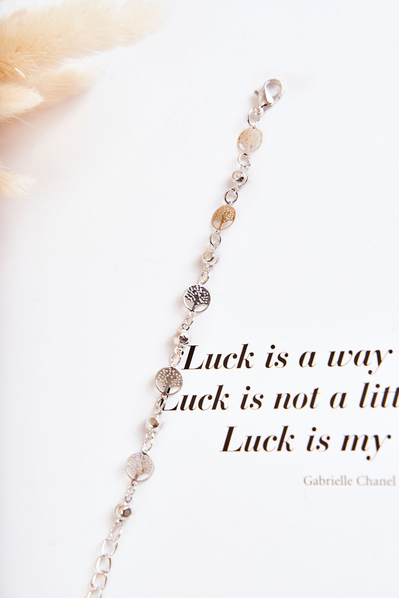 Biżuteria jest świetnym uzupełnieniem nie tylko tych elegancki, ale i codziennych stylizacji. Delikatne łańcuszki, bransoletki, broszki - idealnie podkreślą Twój styl. Koniecznie sprawdź naszą ofertę akcesoriów. Bransoletka ta została wykonana z metalu nieszlachetnego. Posiada zawieszki w postaci drzew w kole. Możliwość regulacji. Dodatkowo posiada ozdobne dżety w postaci cyrkonii.
