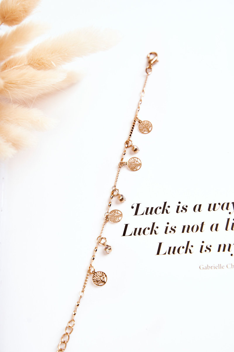 Biżuteria jest świetnym uzupełnieniem nie tylko tych elegancki, ale i codziennych stylizacji. Delikatne łańcuszki, bransoletki, broszki - idealnie podkreślą Twój styl. Koniecznie sprawdź naszą ofertę akcesoriów. Bransoletka ta została wykonana z metalu nieszlachetnego. Posiada zawieszki w postaci drzew w kole. Możliwość regulacji. Dodatkowo posiada ozdobne dżety w postaci cyrkonii.