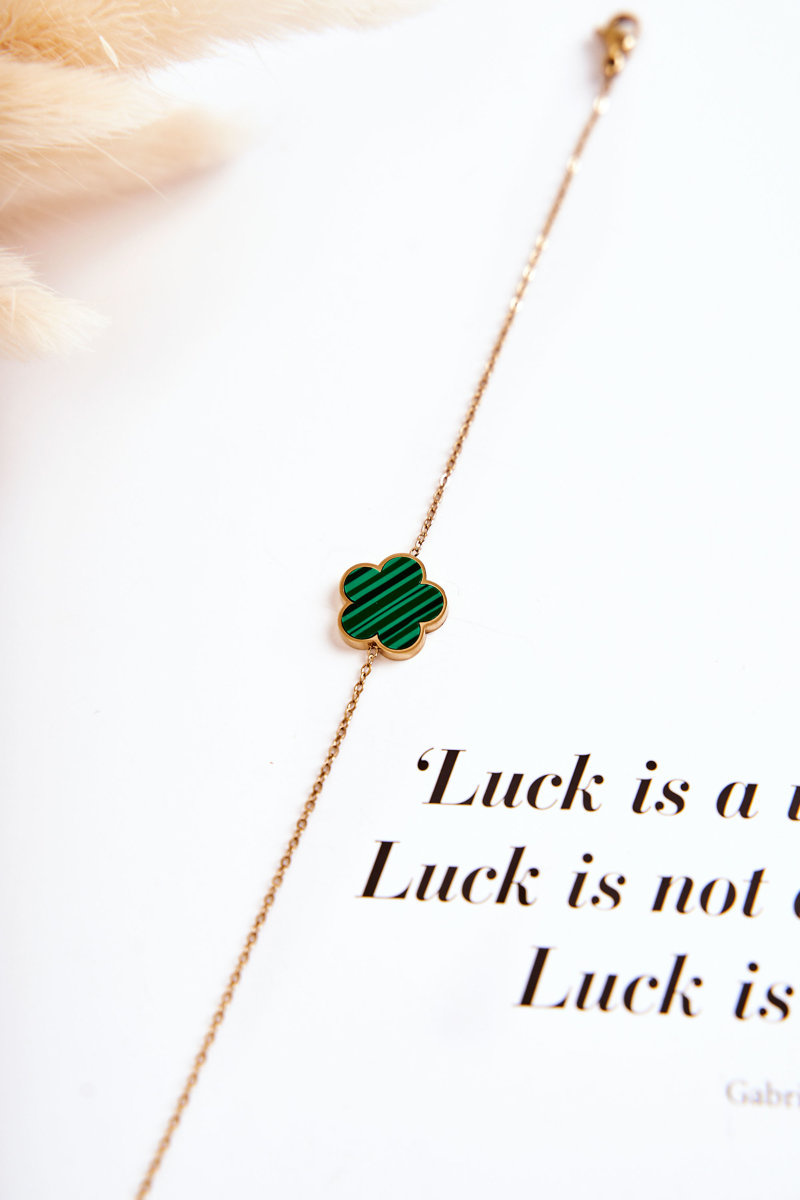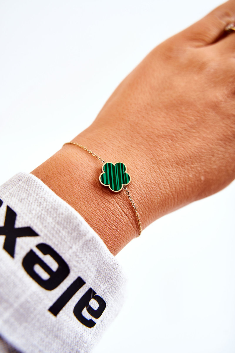 Bransoletka Damska Modna Zielono-Czarny Kwiat Złota