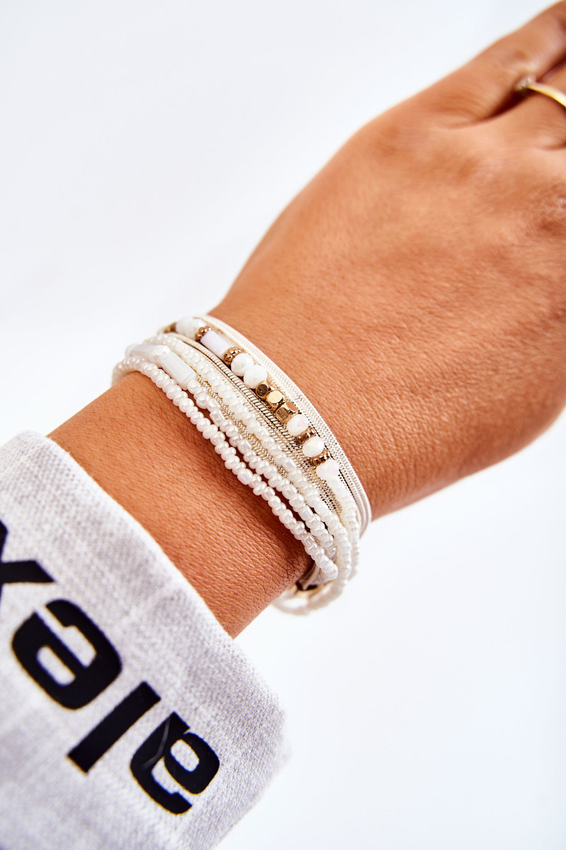 Bransoletka Damska Ozdoby Perełki Kryształki Biała