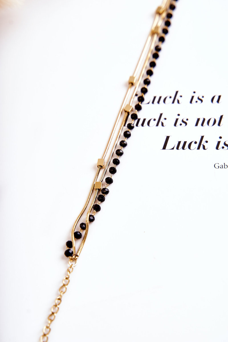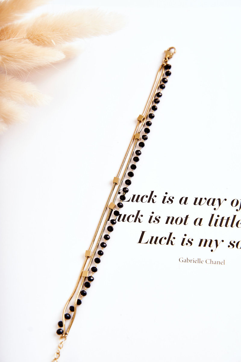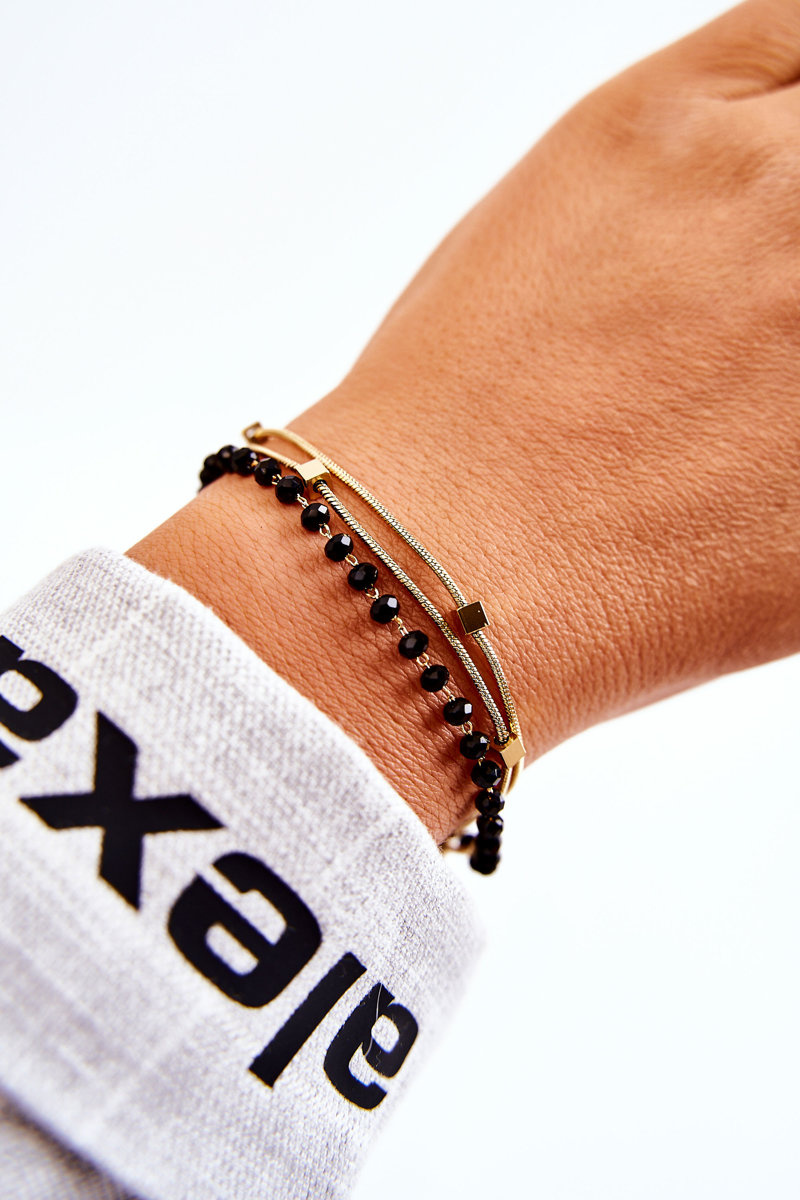 Bransoletka Damska Podwójna Mini Kwadraty Złoto-Czarna