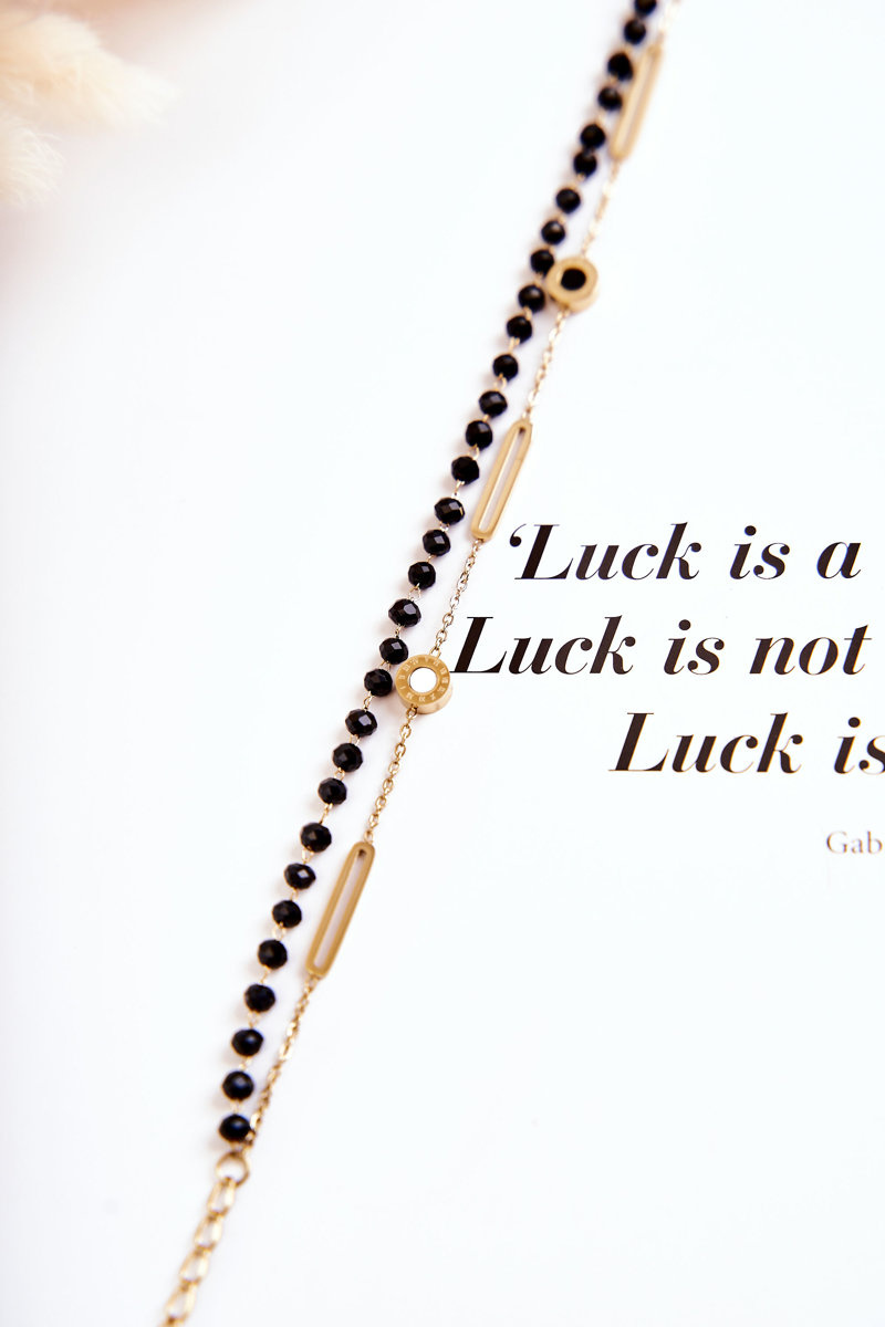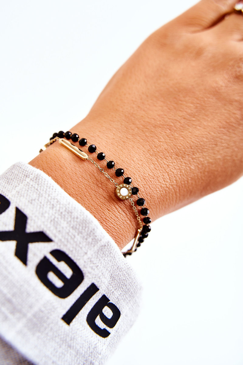 Biżuteria jest świetnym uzupełnieniem nie tylko tych elegancki, ale i codziennych stylizacji. Delikatne łańcuszki, bransoletki, broszki - idealnie podkreślą Twój styl. Koniecznie sprawdź naszą ofertę akcesoriów. Bransoletka na podwójnym pasku ze stali nierdzewnej. Przyozdobiona małymi zegarami oraz koralikami. Możliwość regulacji. Koniecznie musisz ją mieć!