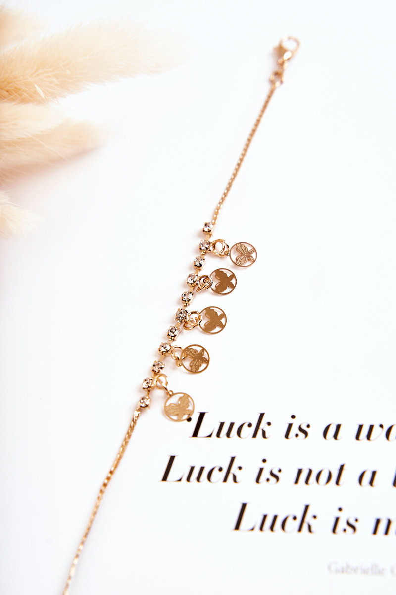 Bransoletka Damska Regulowana Cyrkonie Motyle Złota