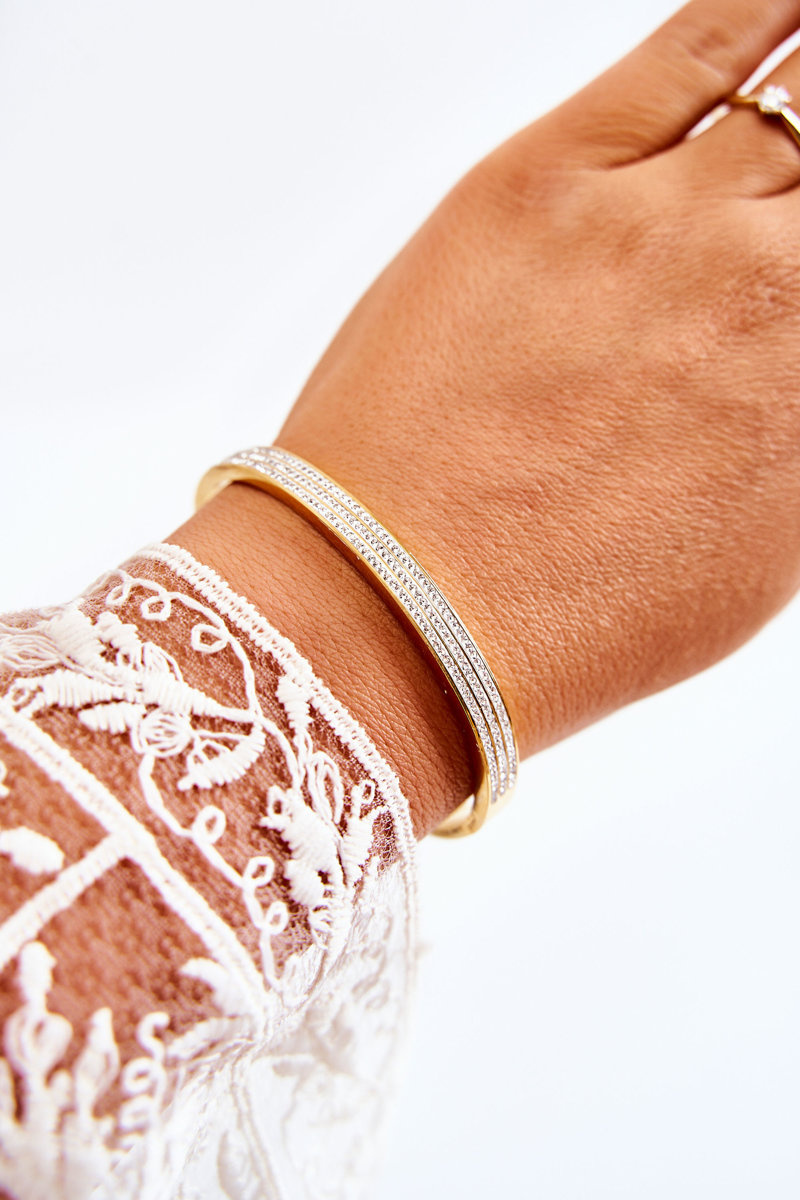 Bransoletka Damska Stalowa Ozdobne Cyrkonie Złota
