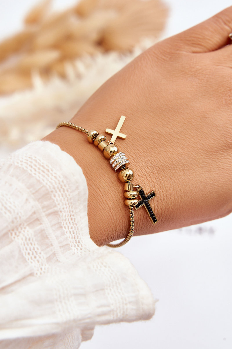 Bransoletka Elegancka Damska Krzyżyki Cyrkonie Złota