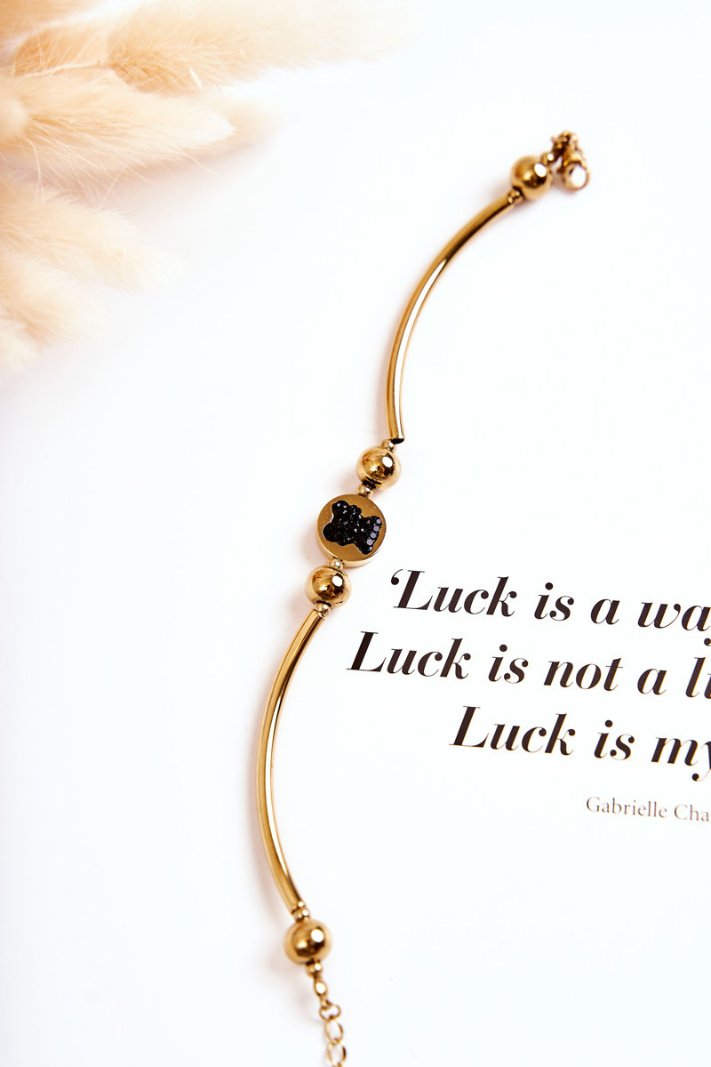 Biżuteria jest świetnym uzupełnieniem nie tylko tych elegancki, ale i codziennych stylizacji. Delikatne łańcuszki, bransoletki, broszki - idealnie podkreślą Twój styl. Koniecznie sprawdź naszą ofertę akcesoriów. Bransoletka na pasku ze stali nierdzewnej z dodatkowymi, usztywnianymi elementami. Przyozdobiona misiem z imitacji cyrkonii oraz kulkami. Możliwość regulacji. Koniecznie musisz ją mieć!
