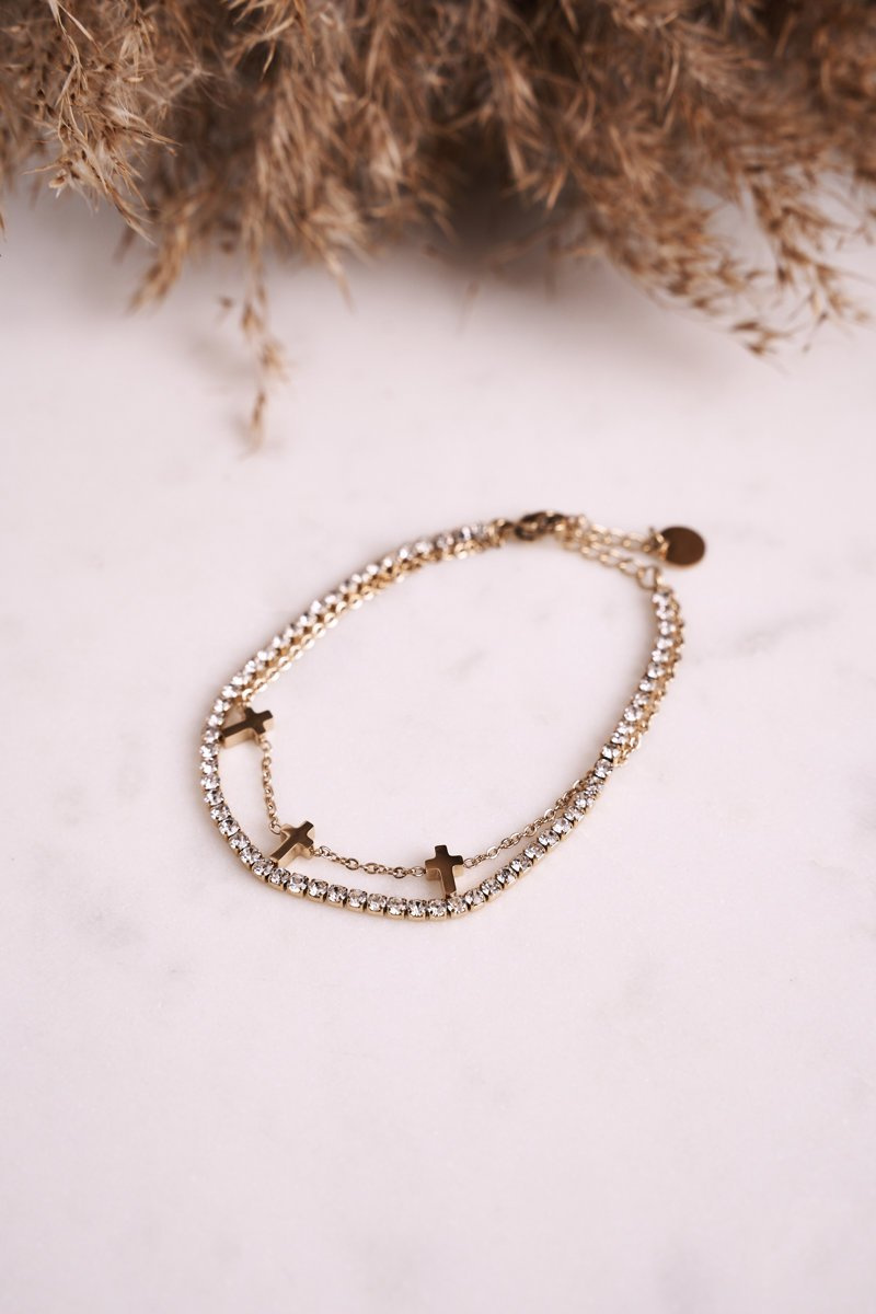 Bransoletka Podwójna z Krzyżykami i Cyrkoniami Złota Irene