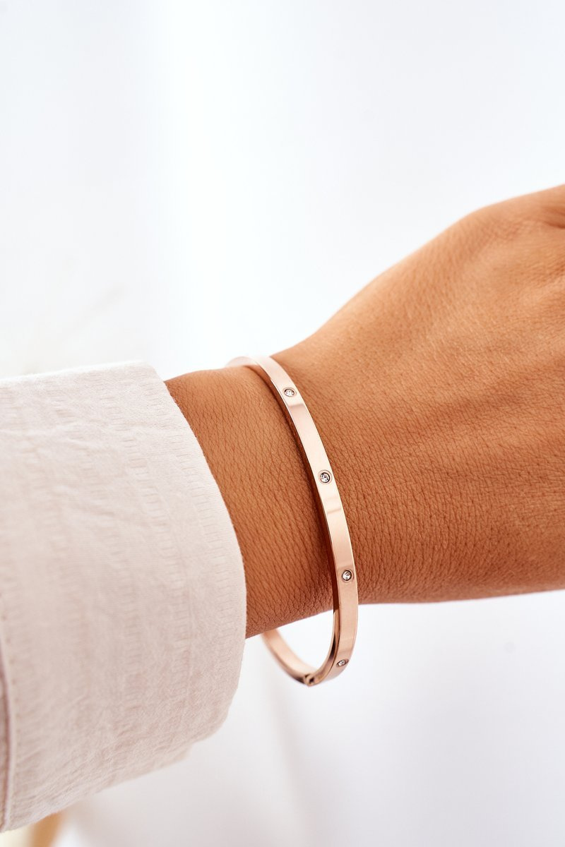 Bransoletka Stalowa Z Cyrkoniami Różowe Złoto