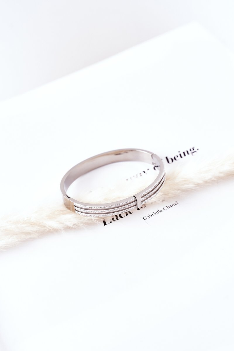 Bransoletka wykonana jest ze stali nierdzewnej, ozdobiona mieniącymi się cyrkoniami.