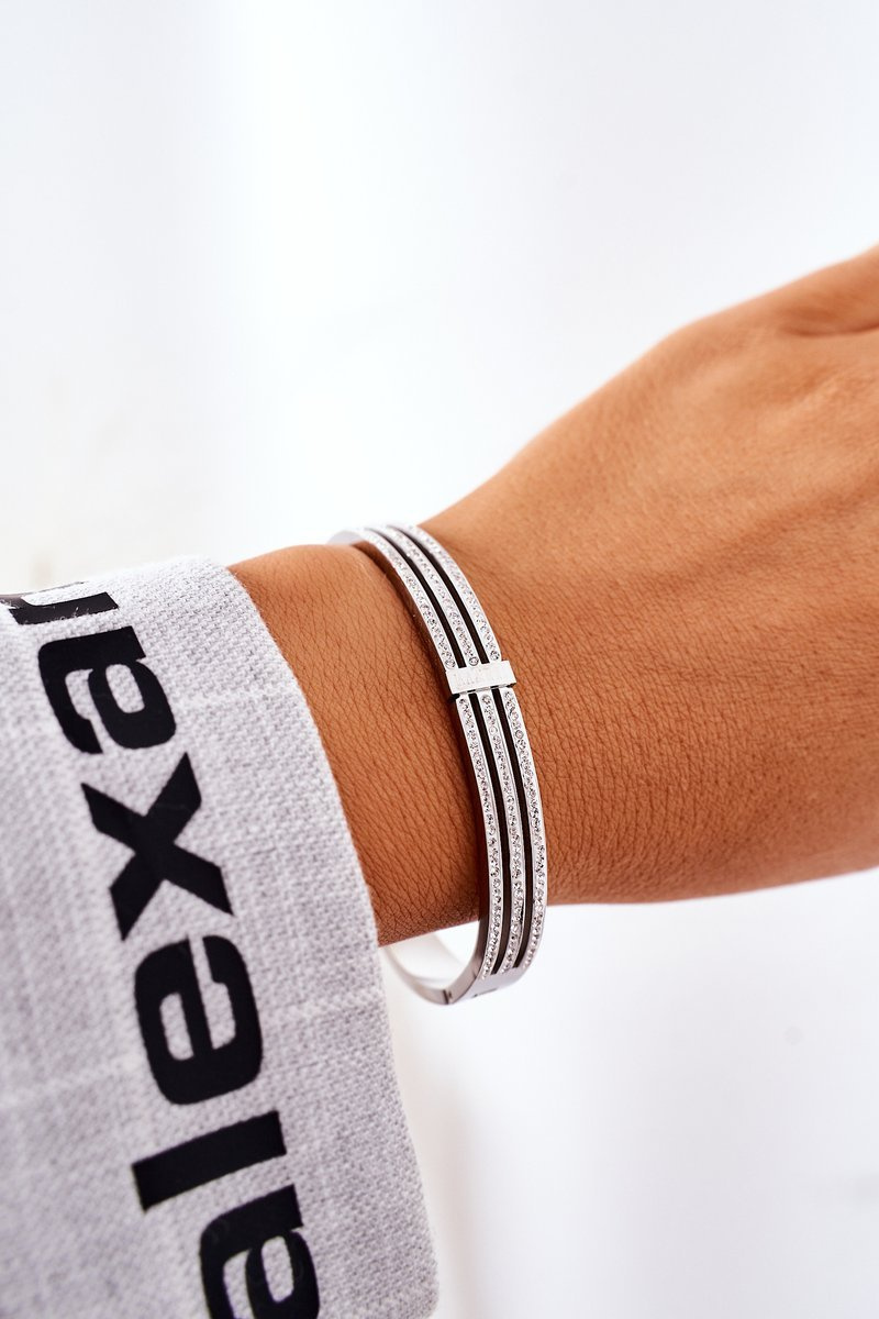 Bransoletka Stalowa z Cyrkoniami Srebrna
