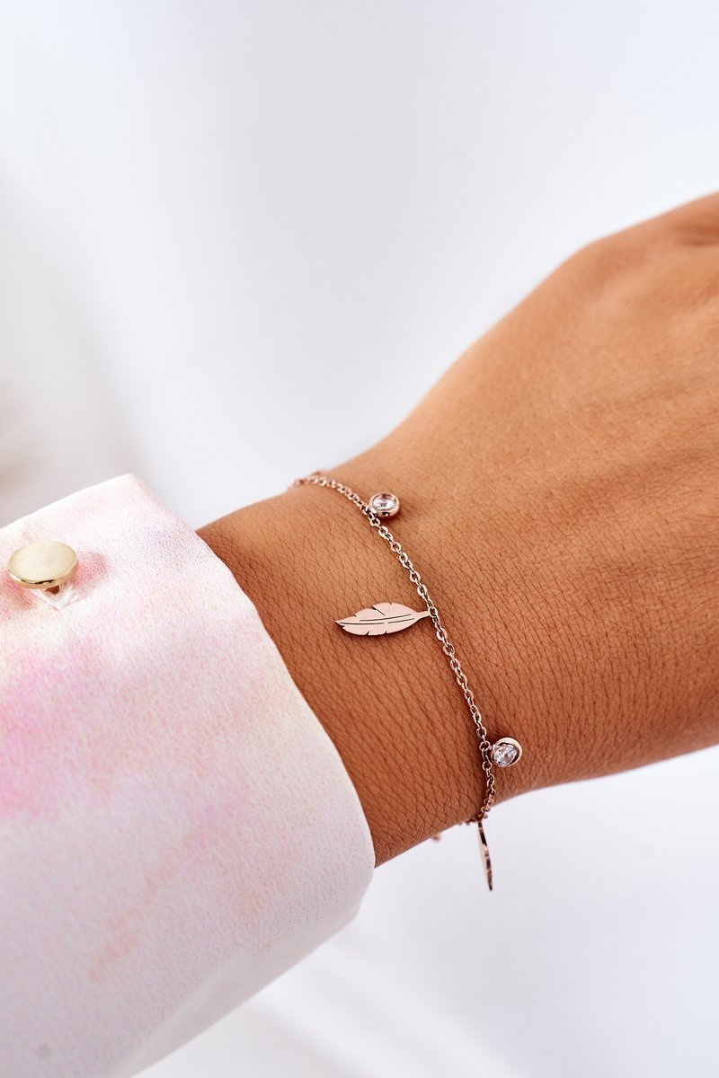 Bransoletka Z Piórkami Oraz Cyrkoniami Różowe Złoto