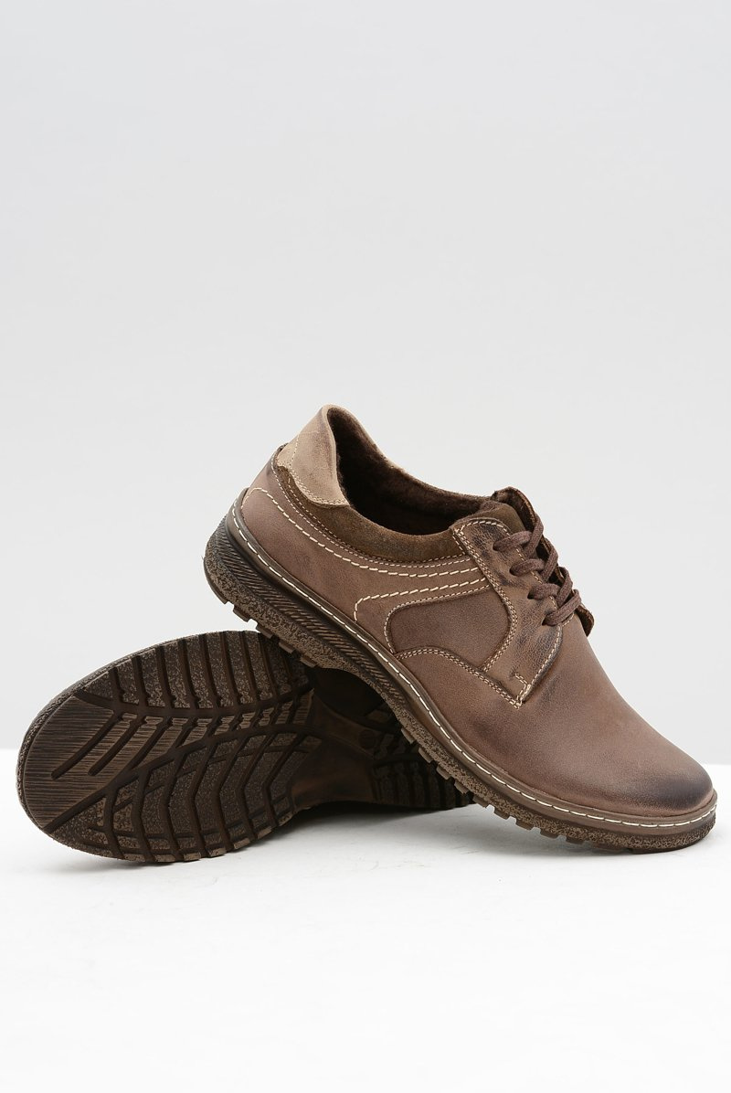 Brązowe Skórzane Męskie Ocieplane Półbuty Ernesto Na Zimę