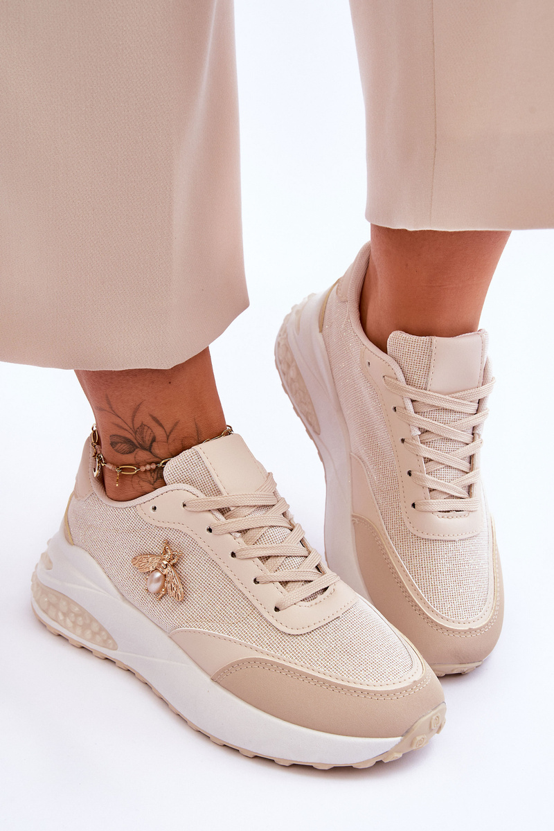 Buty Sportowe Błyszczące Ozdoba Beżowe Seneca