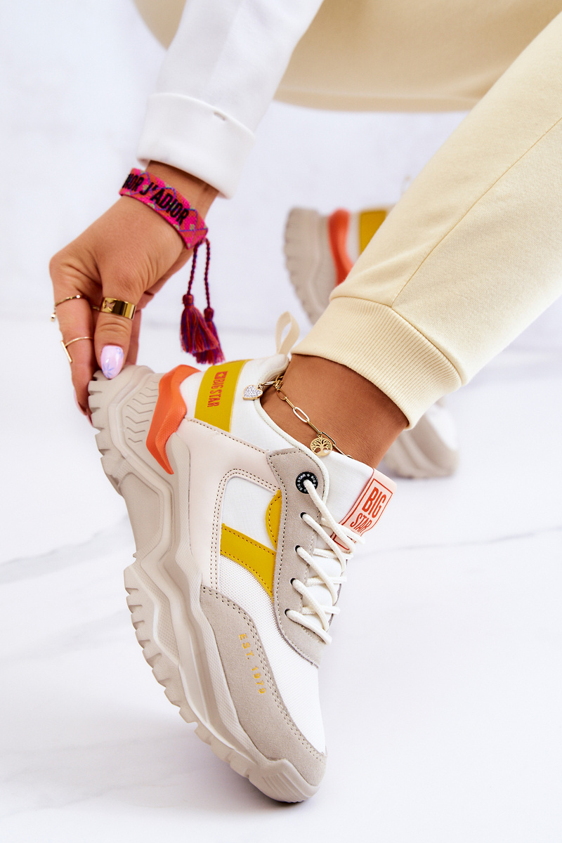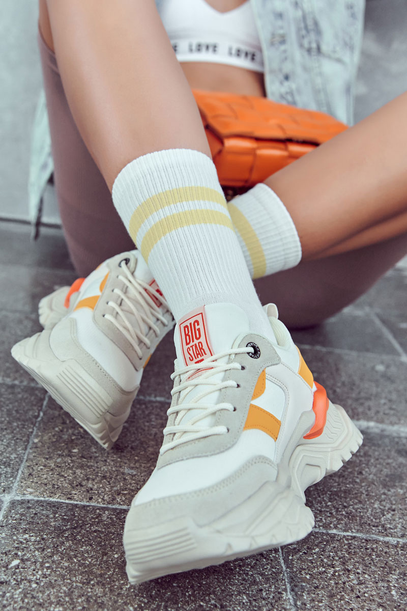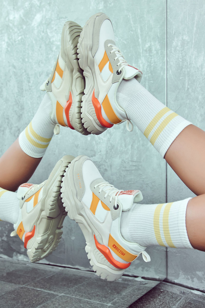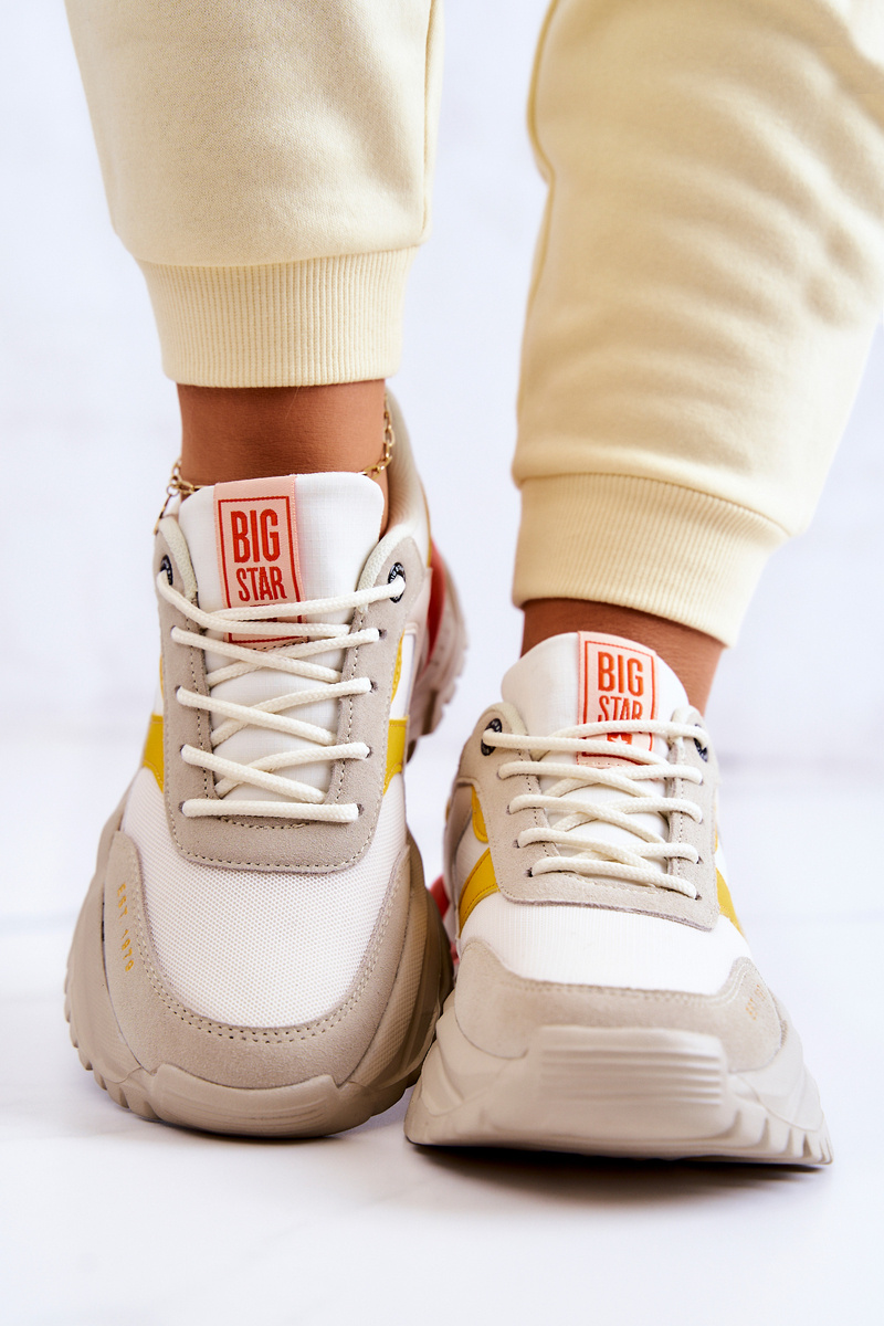 Buty Sportowe Damskie Biało-Beżowe Big Star JJ274A411
