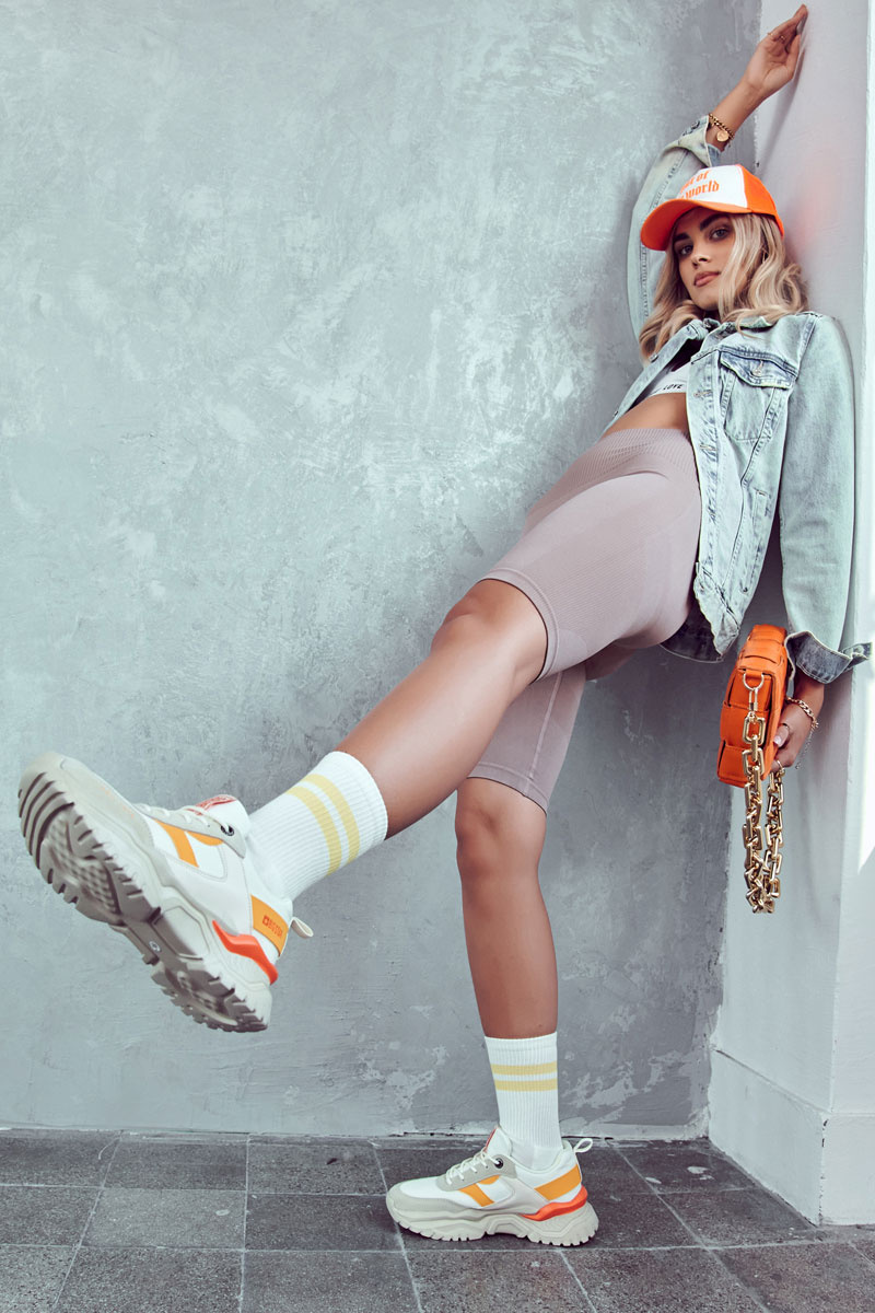 W szafie każdej kobiety powinna znaleźć się para wygodnych butów sportowych. Buty te wyróżniają się wygodą w użytkowaniu oraz wysoką jakością wykonania. Płaska podeszwa na delikatnej platformie świetnie izoluje od podłoża. Wykorzystasz je w wielu sytuacjach – podczas joggingu, spaceru czy spotkania ze znajomymi. Wykonane z połączenia przewiewnej tkaniny, eko skóry oraz naturalnego zamszu. Model wiązany. Bardzo lekkie i komfortowe w użytkowaniu.