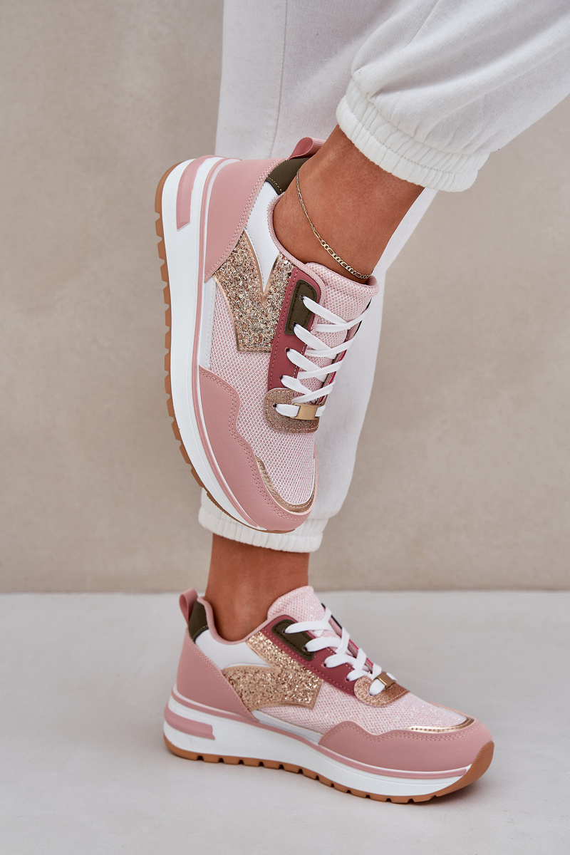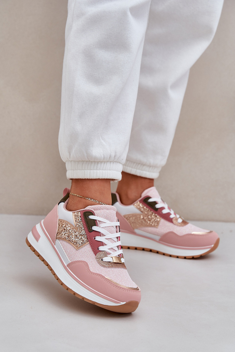 Buty Sportowe Damskie Błyszczące Różowe Leesema