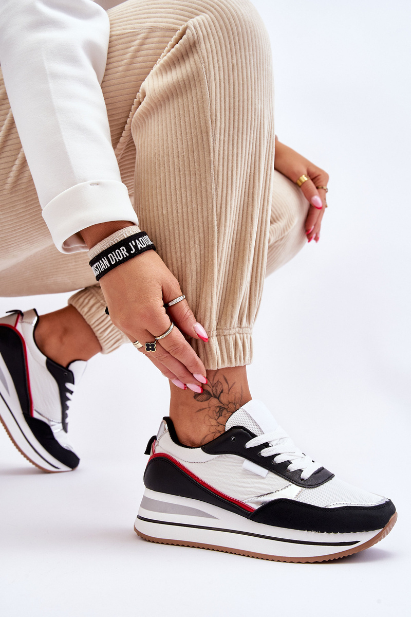 Sneakersy to wyjątkowe buty, które świetnie wyglądają i są jednocześnie bardzo komfortowe w noszeniu. Ich sportowy wygląd sprawia, że są stylowym dodatkiem do wielu kobiecych stylizacji. Wykonane z połączenia eko skóry oraz materiału tekstylnego. Model osadzony na masywnej platformie oraz koturnie. Klasycznie sznurowane. Świetny model na co dzień!