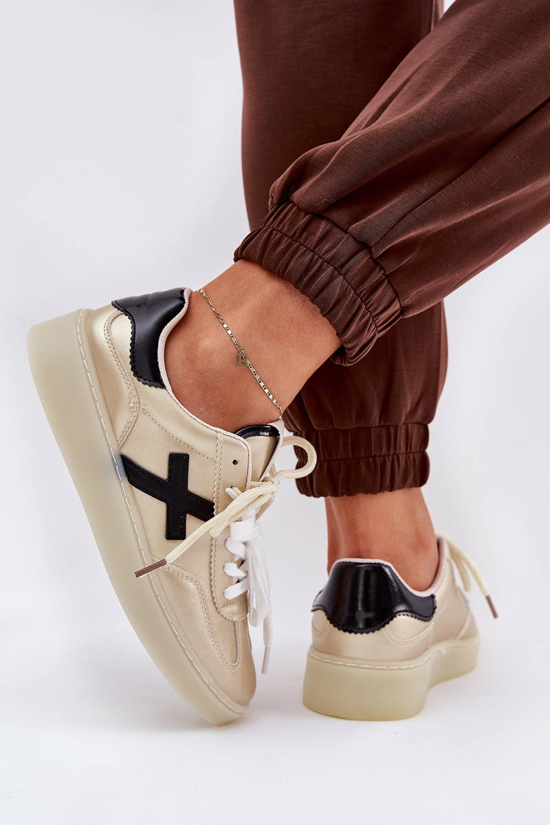 Buty Sportowe Damskie Niskie Złote Zelevelis
