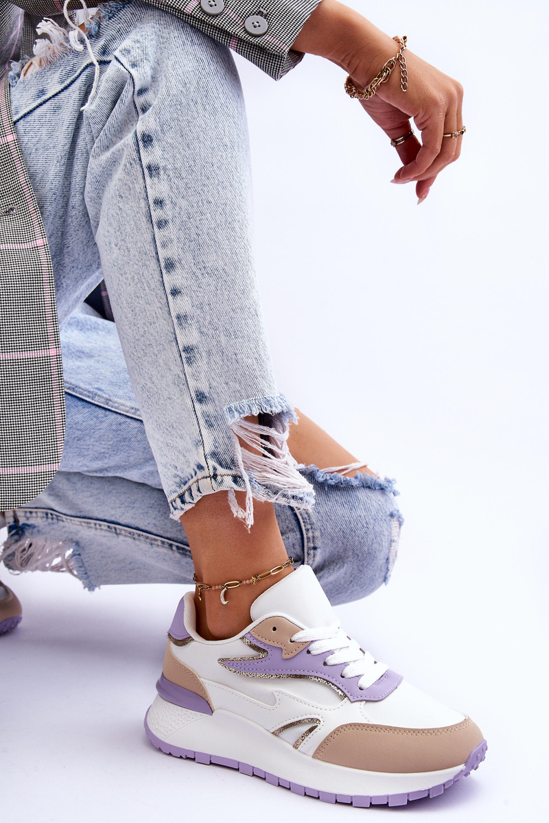 Buty Sportowe Damskie Platforma Biało-Fioletowe Henley